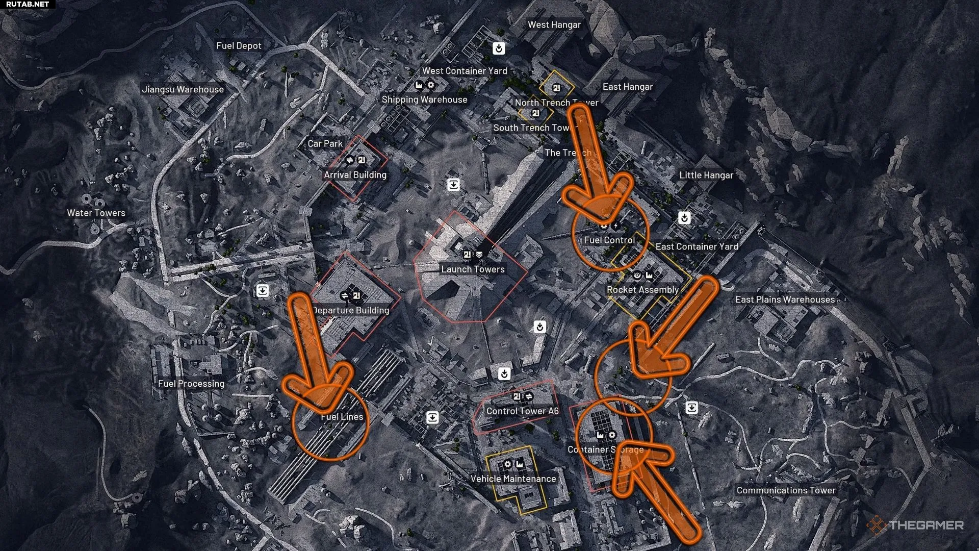| Крыша Контейнерного склада | Контейнерный склад | Войдите на Контейнерный склад с восточной стороны и воспользуйтесь тросом, чтобы подняться на крышу. Взаимодействуйте здесь для передачи. |