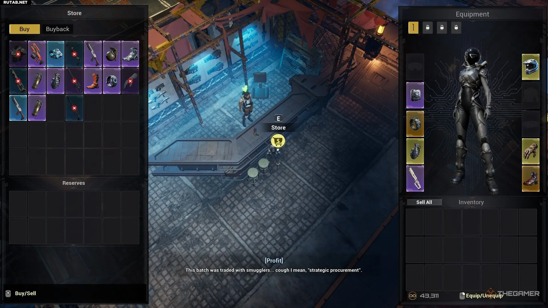 Между забегами (или «развёртываниями») вы можете посетить магазин в основном хабе, слева от зоны. Здесь вы увидите несколько предметов, которые могут быть любой частью снаряжения или оружием для вашего текущего персонажа или любого другого (персонажи в лёгкой броне не могут использовать тяжёлое снаряжение и наоборот). Единственная проблема в том, что доступное снаряжение будет очень ограниченным.
