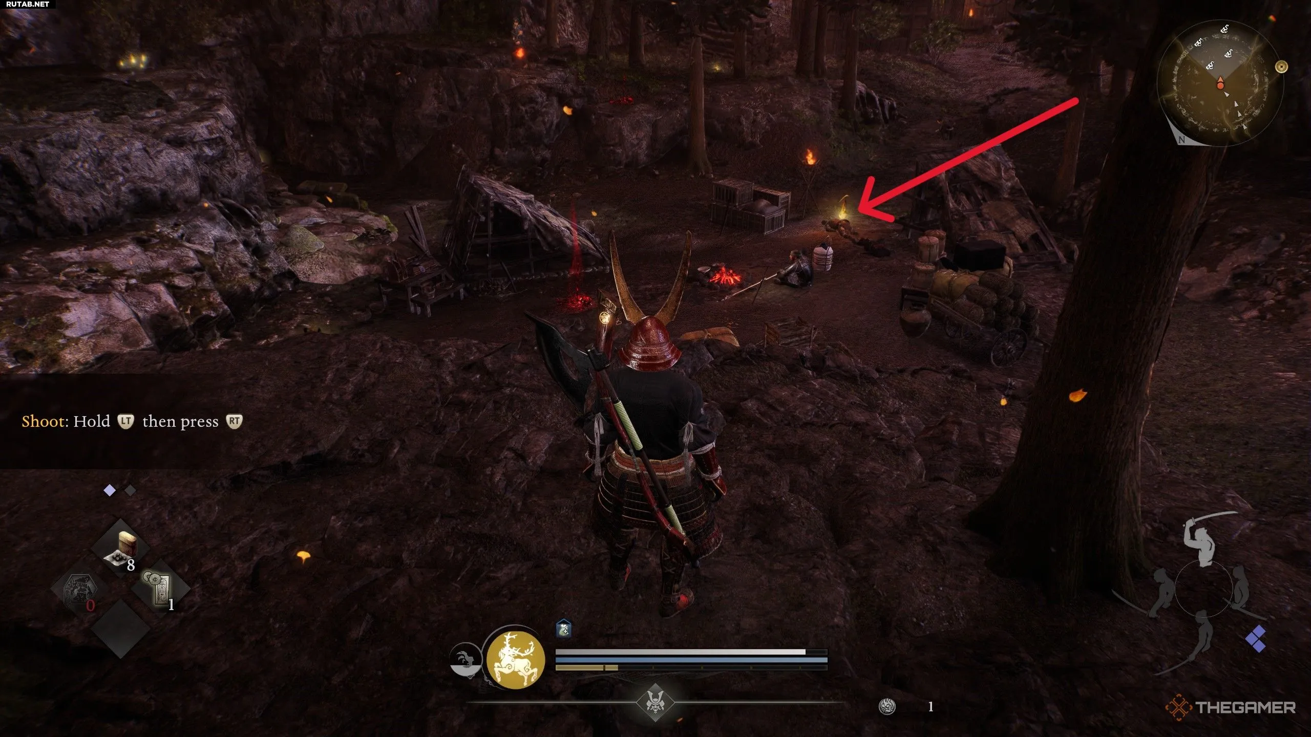 После этого пробирайтесь в лагерь и расправьтесь с остальными бандитами у костра. Один стражник прячется за разрушенным зданием и его легко не заметить, если подходить с севера. Рекомендуется подкрасться и убить его скрытно, чтобы затем сосредоточиться на главаре.