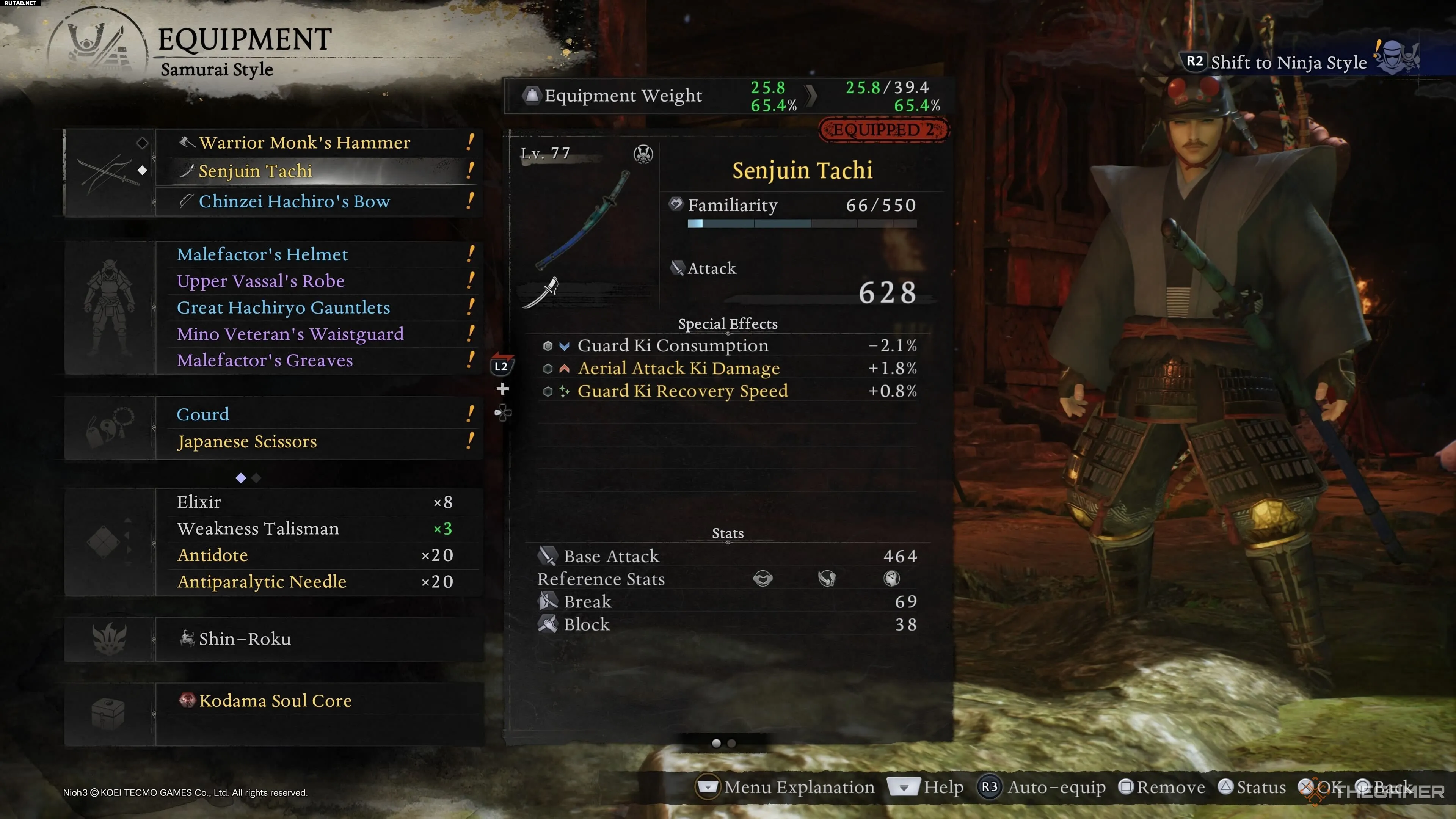 После победы над Мунэнори (что, по мнению автора, значительно проще сделать в высокой стойке с топором) в награду вы получите второй слот для оружия ближнего боя в форме Самурая. Игра явно не сообщает об этом, но это проверенный факт. Теперь осталось сделать то же самое для формы Ниндзя.
