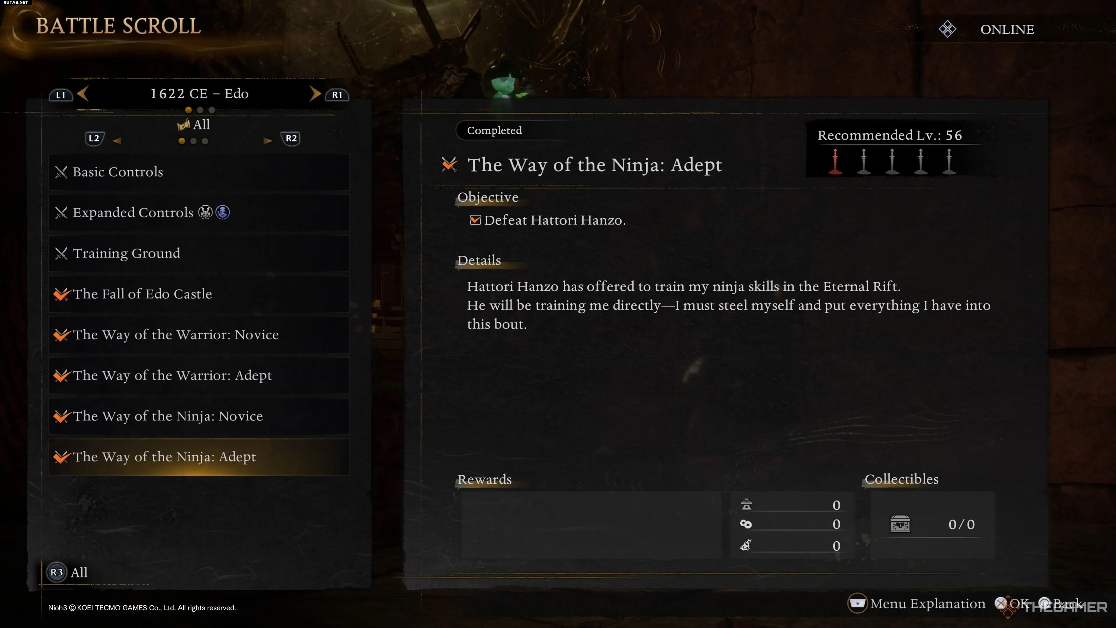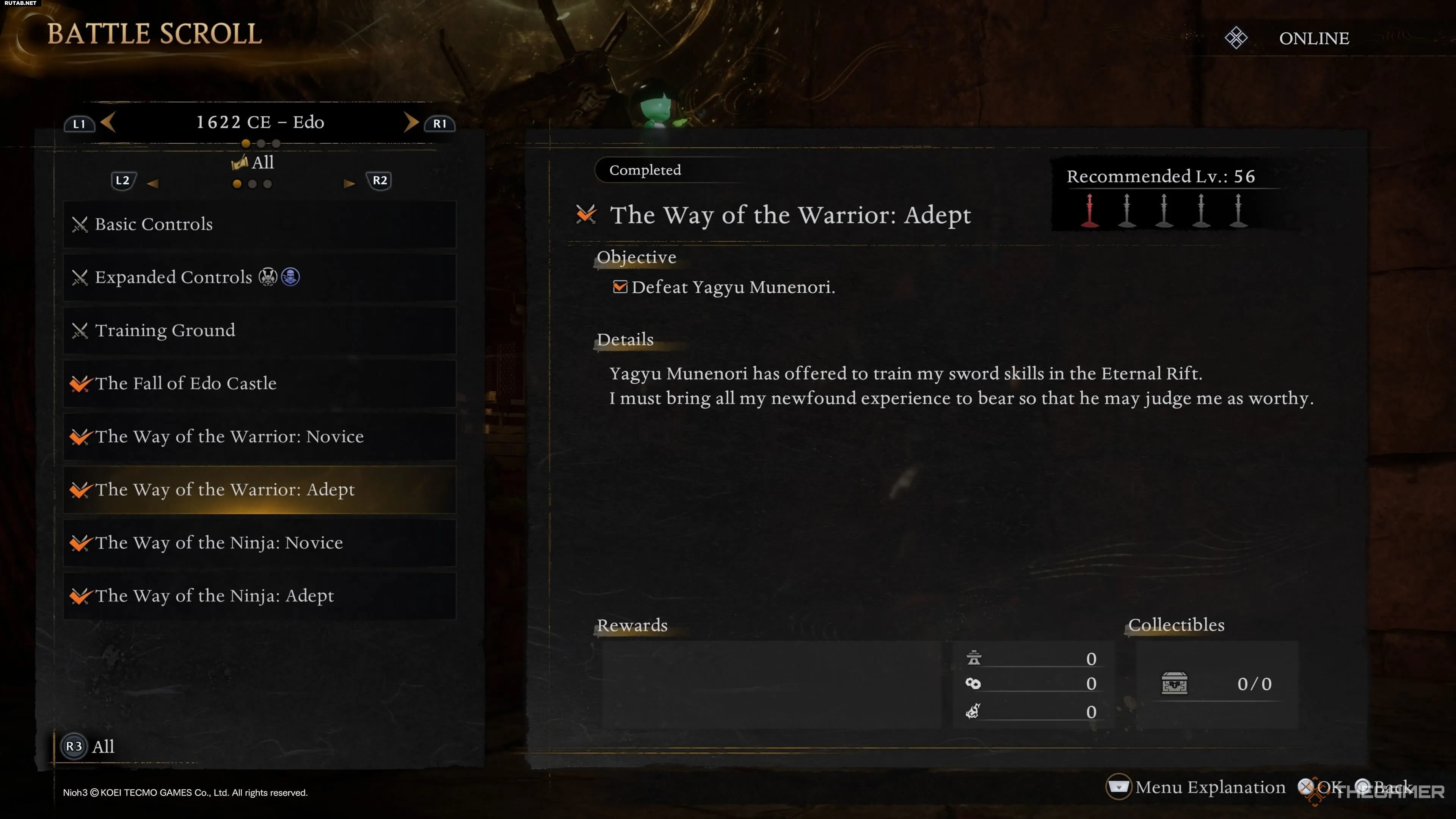 Достигнув определенного момента в первом временном периоде игры «Эпоха воюющих провинций», вы получите зеркало, позволяющее попасть в хаб-мир под названием «Вечная Бездна». В «Вечной Бездне» на левой стороне карты вы найдете Ягю Мунэнори, вашего учителя с начала игры. Первый разговор с Мунэнори откроет миссию «Свитка битвы» под названием «Путь воина: Новичок».