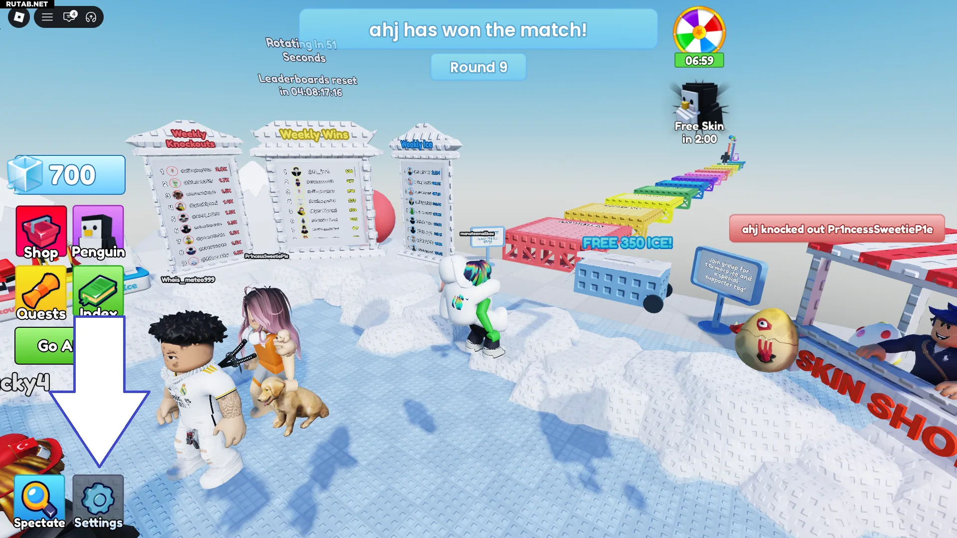 Knockout — это весёлая партийная игра в Roblox, в которой можно открывать множество пингвинов. Вы играете за пингвина на небольшой льдине, и ваша цель — сбросить других игроков в воду. Будьте осторожны: все двигаются одновременно, и вы не видите, куда целится противник, поэтому есть риск вылететь с арены самому!