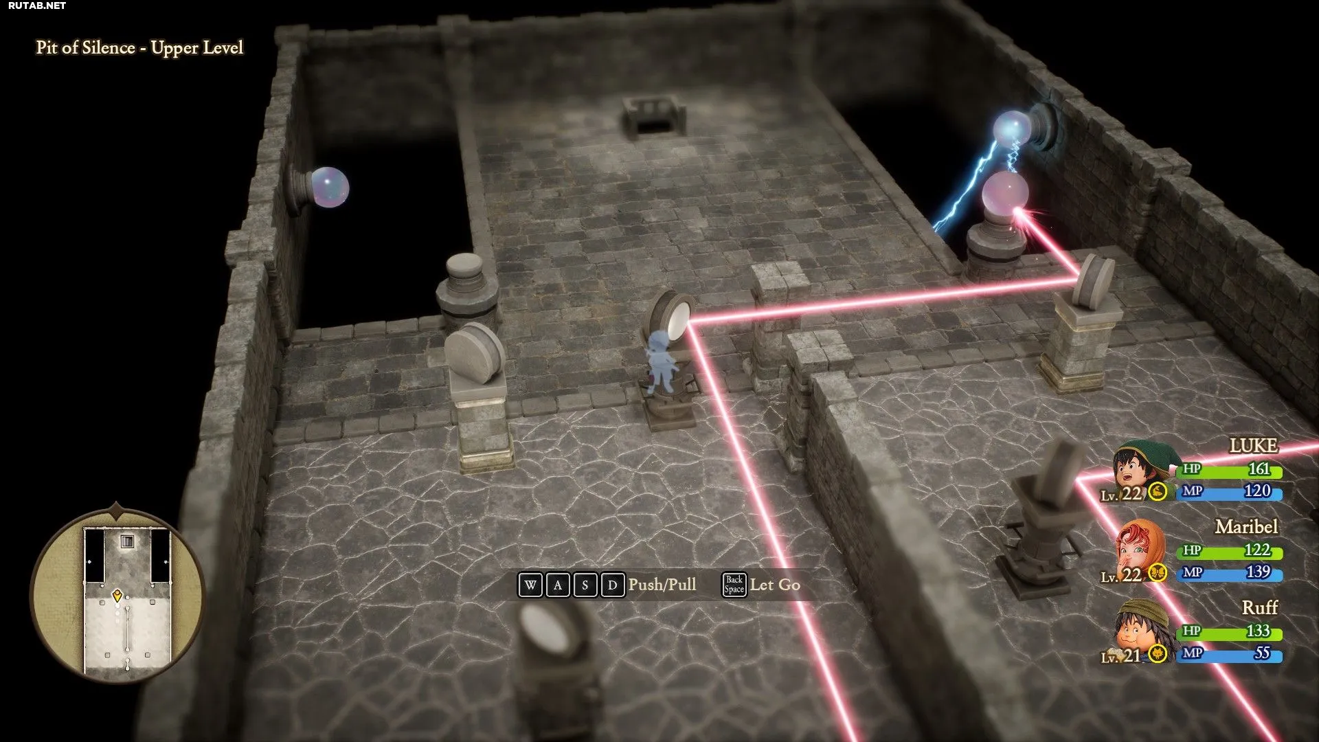 Чтобы разрушить её темницу, нужно разбить два контрольных шара с помощью лазера, выходящего из стены. Для этого требуется перенаправлять его луч, перемещая зеркала и заставляя свет отражаться от них.