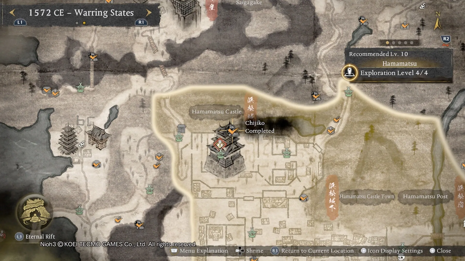 | «Воюющие государства», холм Хамамацу: Находится в самом южном углу области, прямо к западу от святилища Прогулка к святилищу Хатиман (которое технически находится в Хамамацу). |