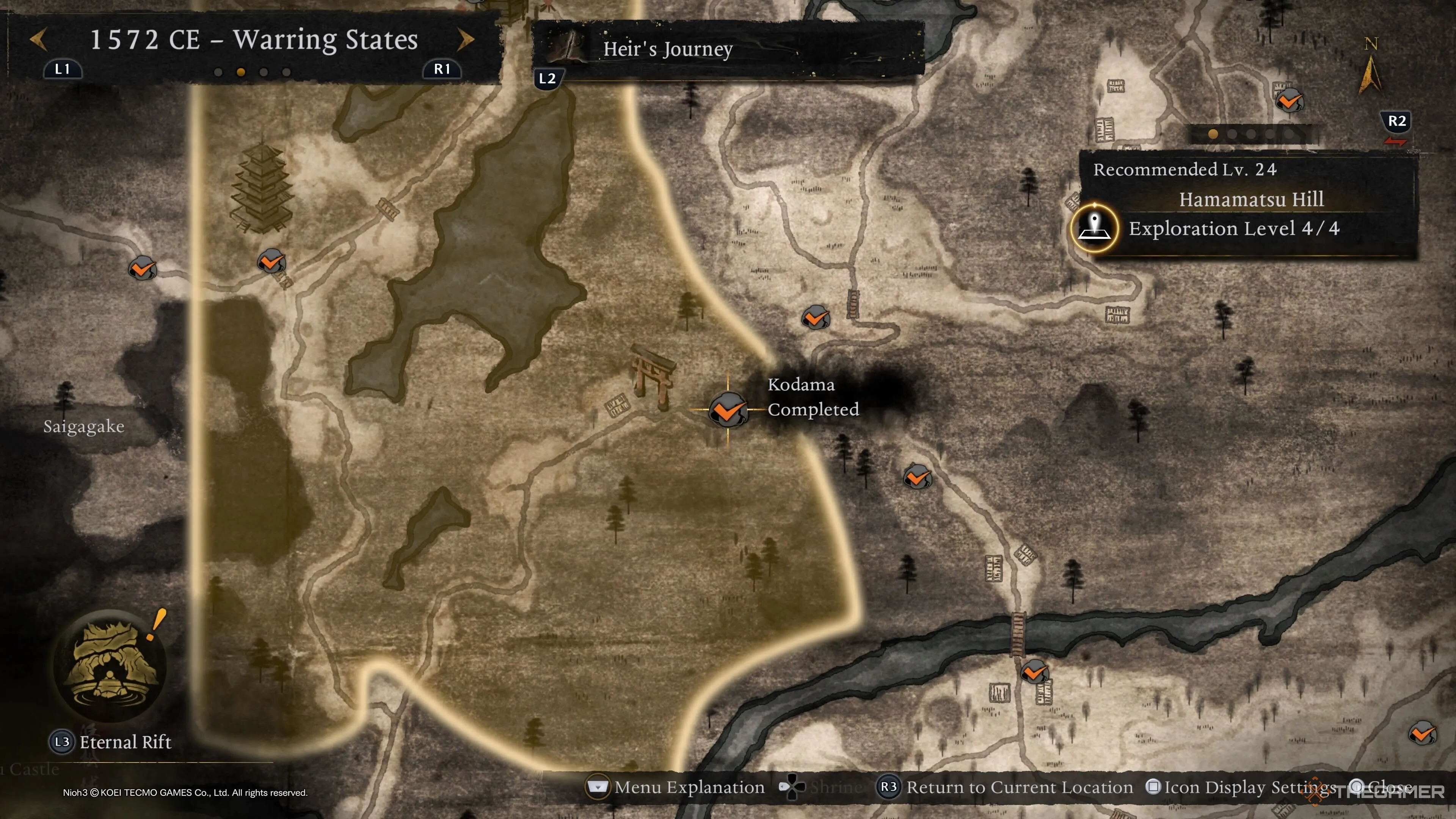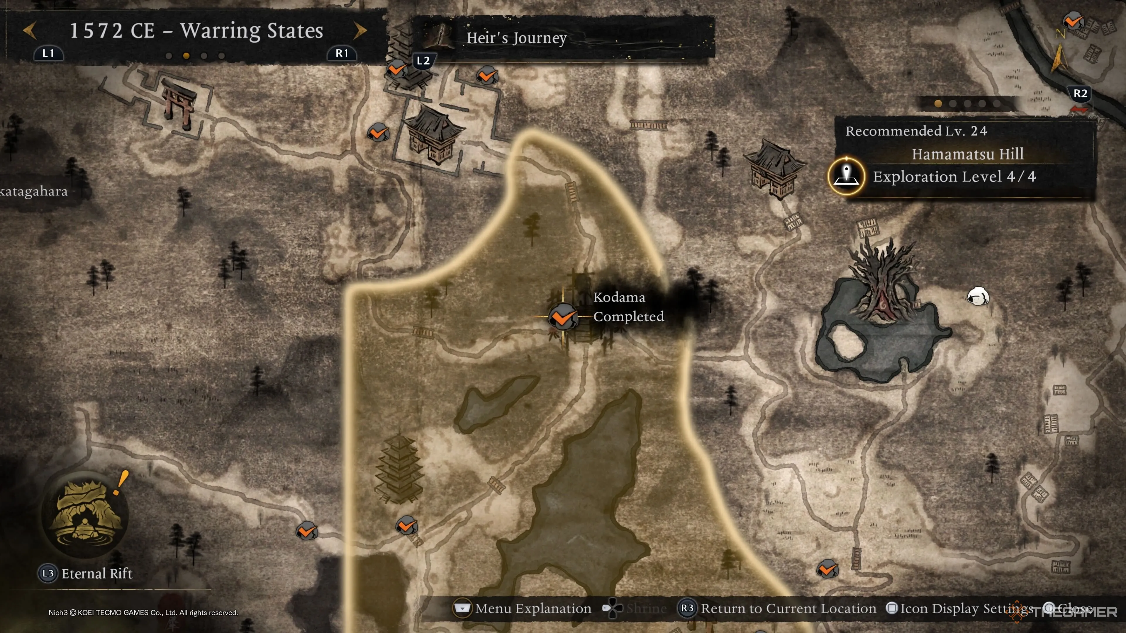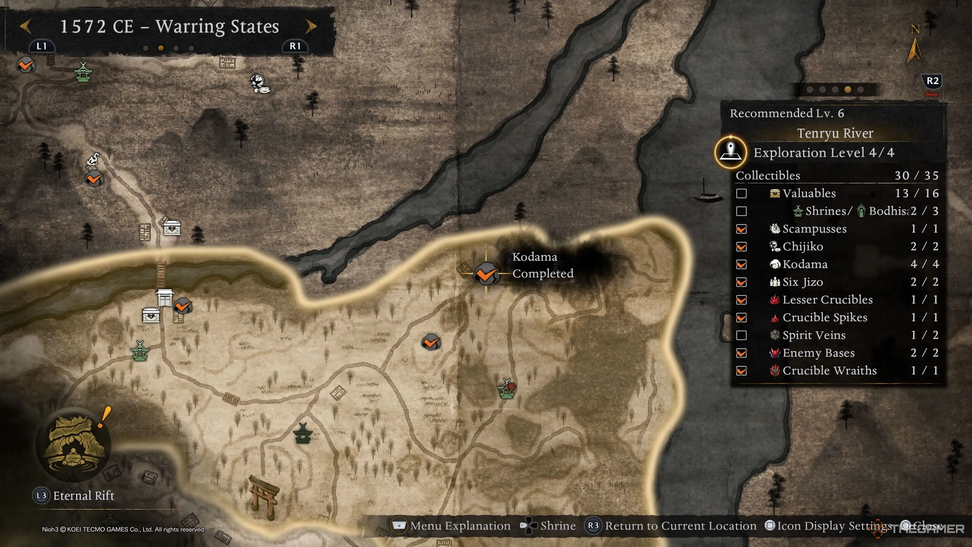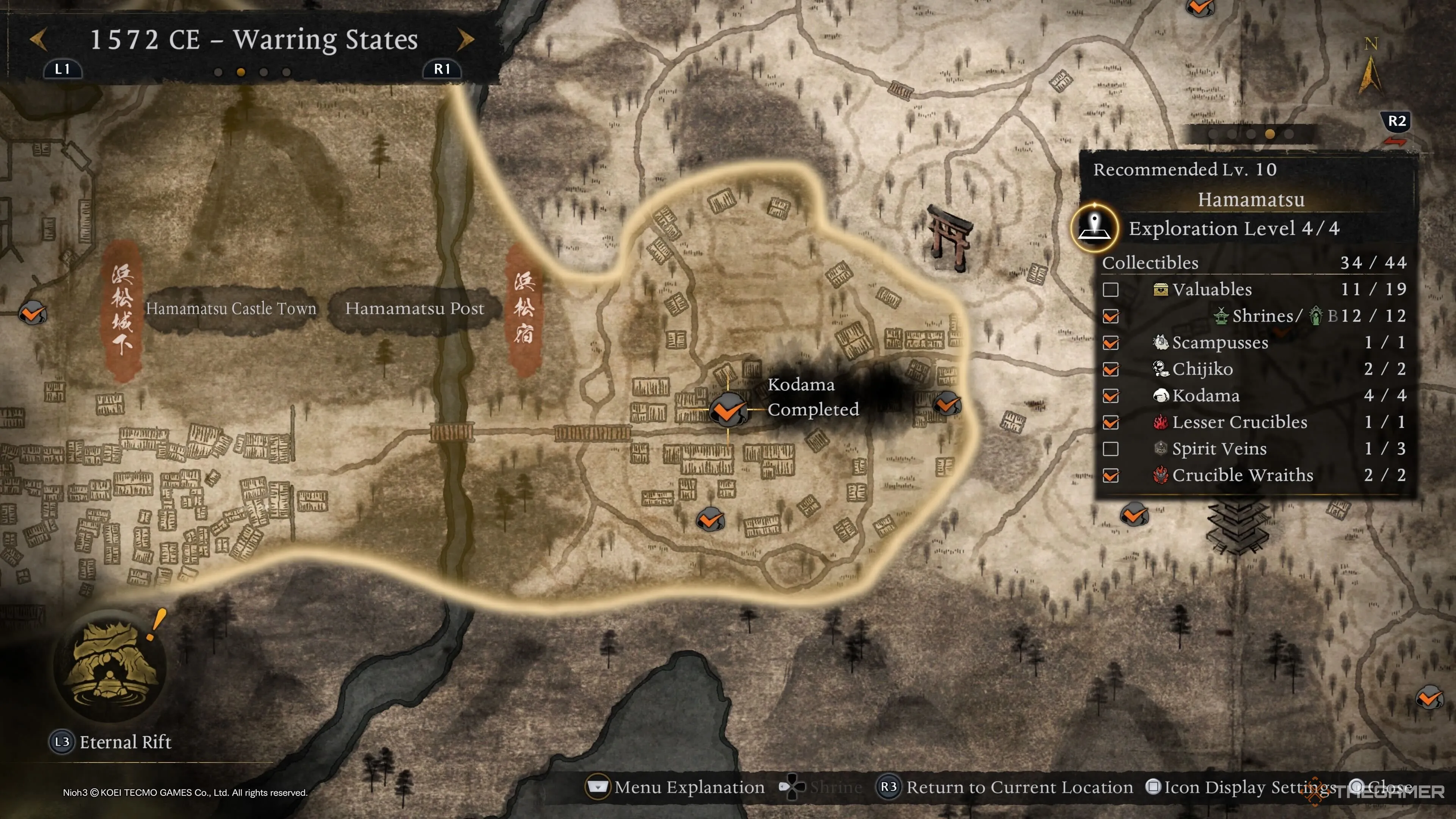 Отправив Кодама домой, вы не только повысите свой уровень исследования, но и получите Заслуги Кодама, которые можно потратить на небольшие улучшения характеристик в меню Благословения Кодама, например, на увеличение эффективности Эликсиров. Эти улучшения быстро складываются в весьма ощутимую пользу, поэтому усилия того стоят. Далее расскажем, как найти каждого Кодама в первом периоде игры — Эпохе Сражающихся царств.
