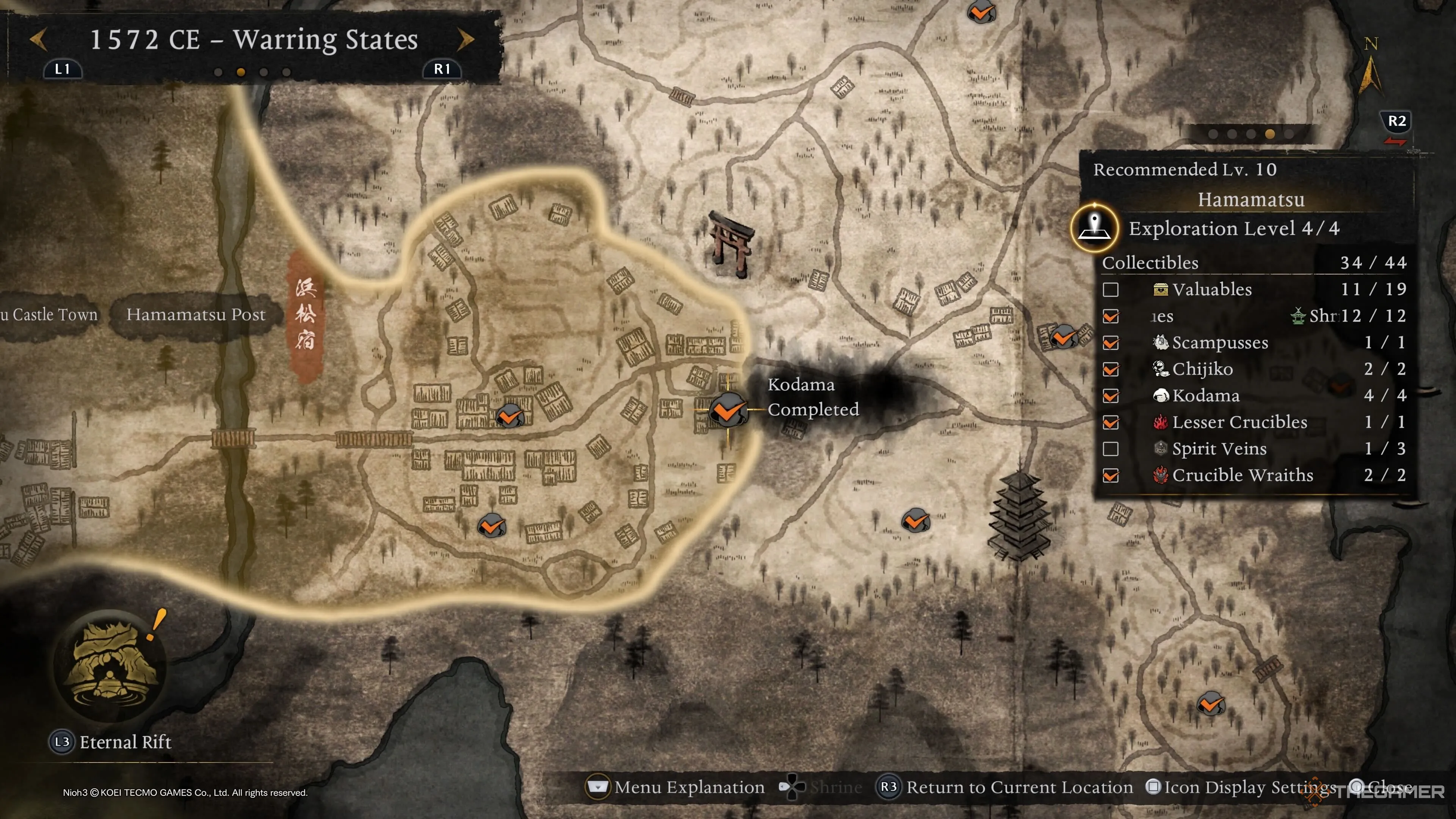 Вы сможете увидеть приблизительное расположение Кодама на карте, когда достигнете 4-го уровня исследования, но бонусы настолько хороши, что стоит собрать их как можно раньше с помощью этого руководства.