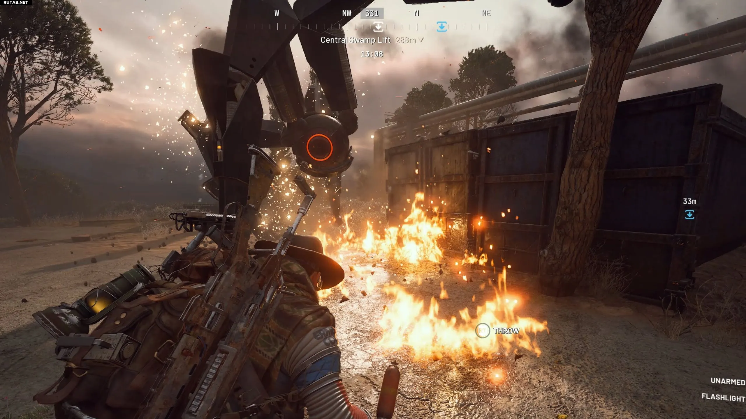 Чтобы быстро уничтожить Прыгуна, можно бросить в него две или три «Огненной гранаты» (Blaze Grenade). Огонь — одна из его слабостей, машина быстро начнёт дымить и будет уничтожена. После победы обыщите её «конечности» — там может быть ARC Performance Steel.