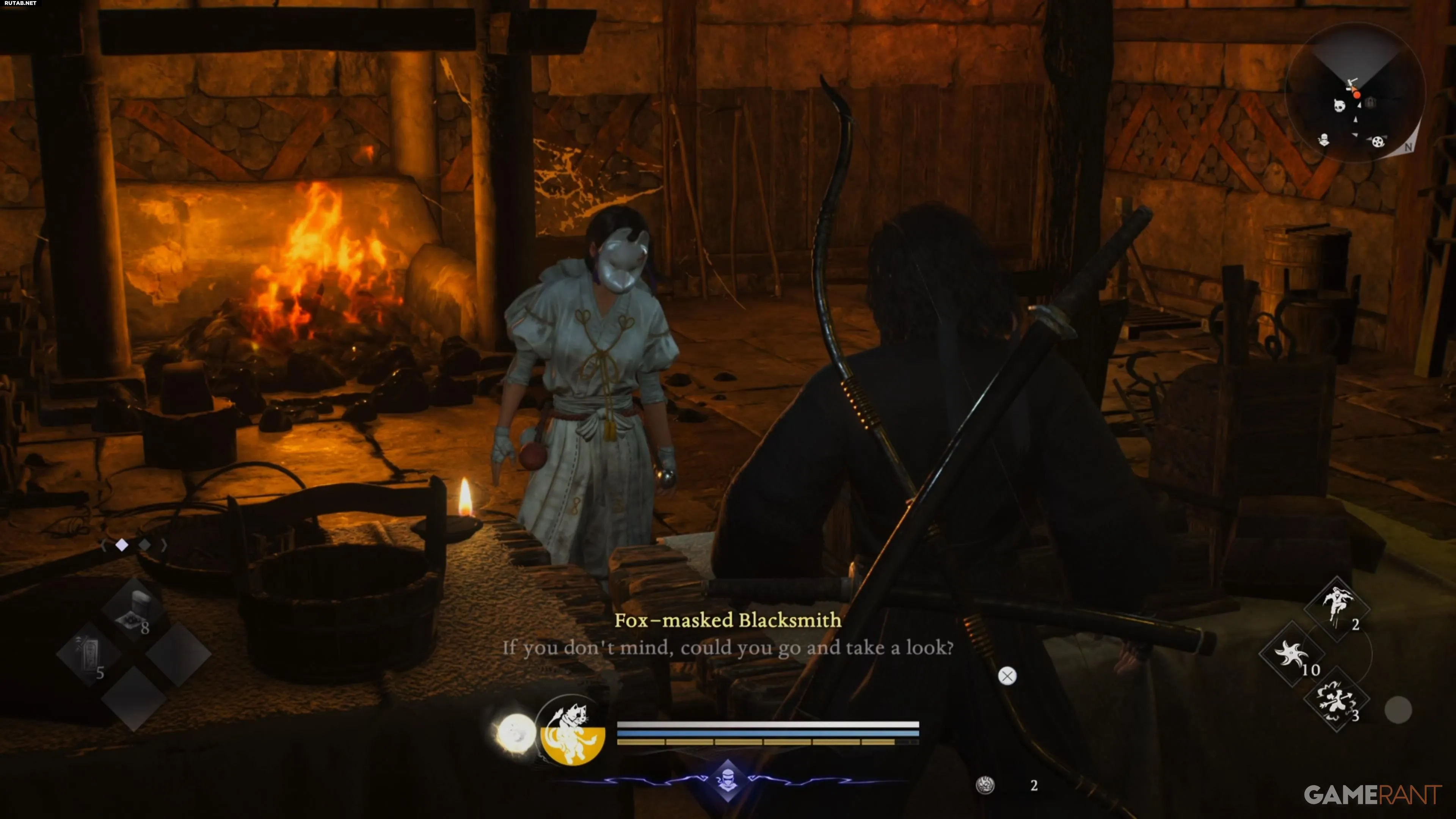 Внутри Расщелины вы найдете Кузнеца в маске лисы. При первом разговоре с этим NPC откроется возможность ковки оружия. Процесс прост: вам нужны материалы, которые можно получить, разбирая ненужные доспехи и снаряжение.