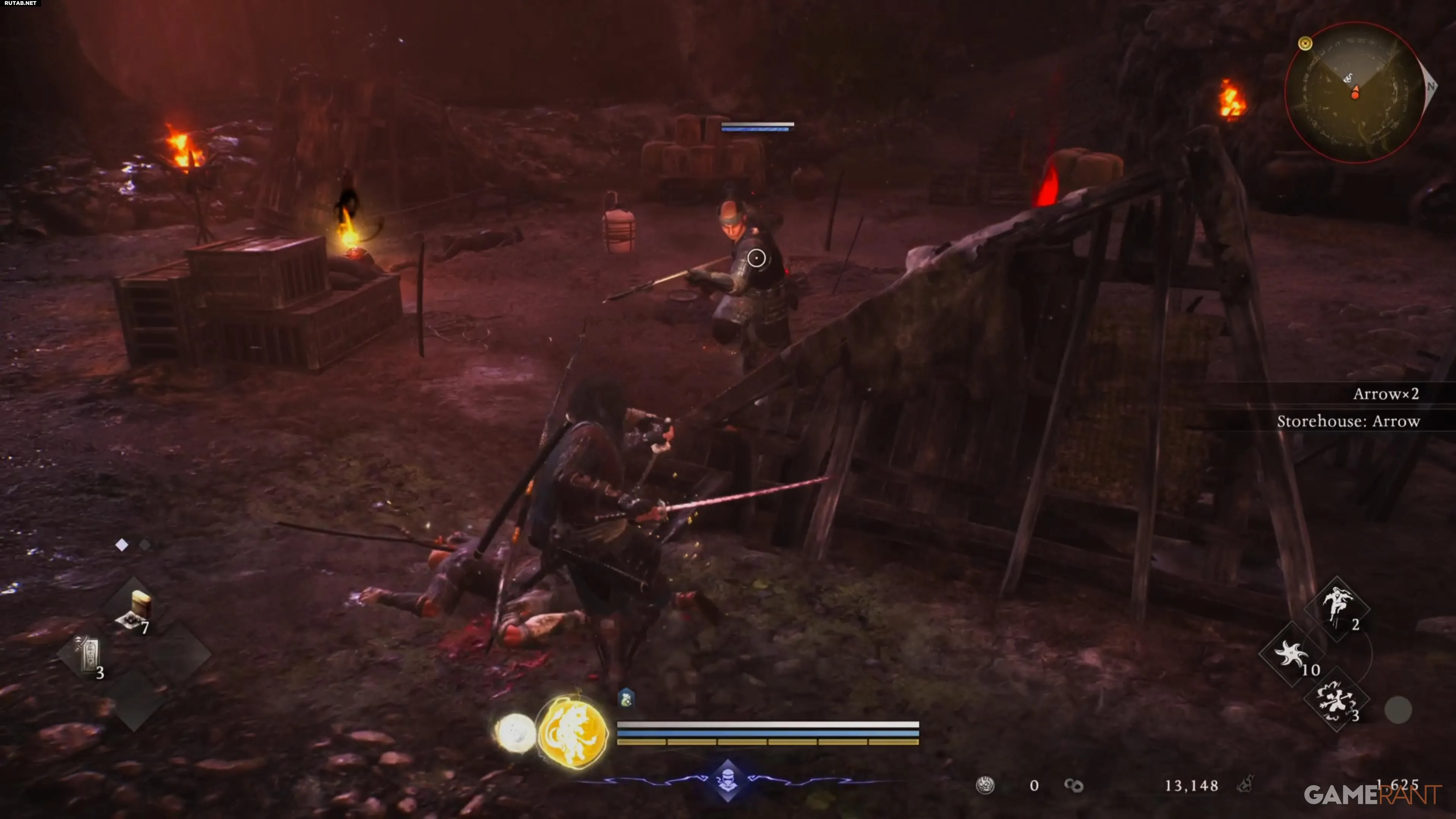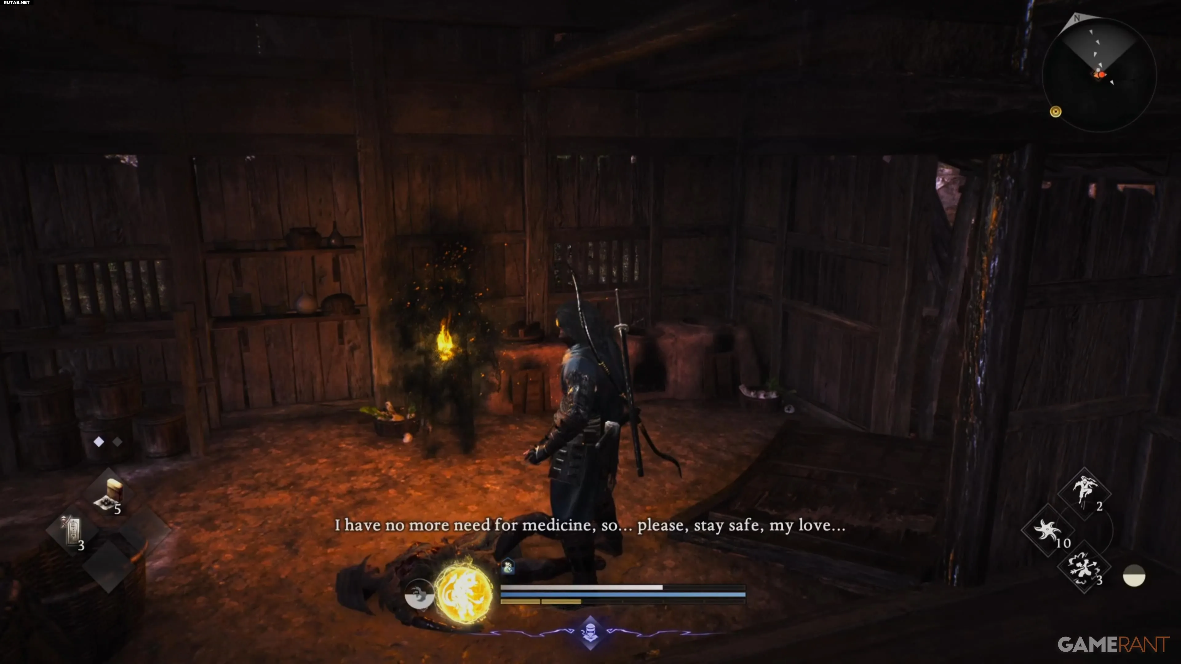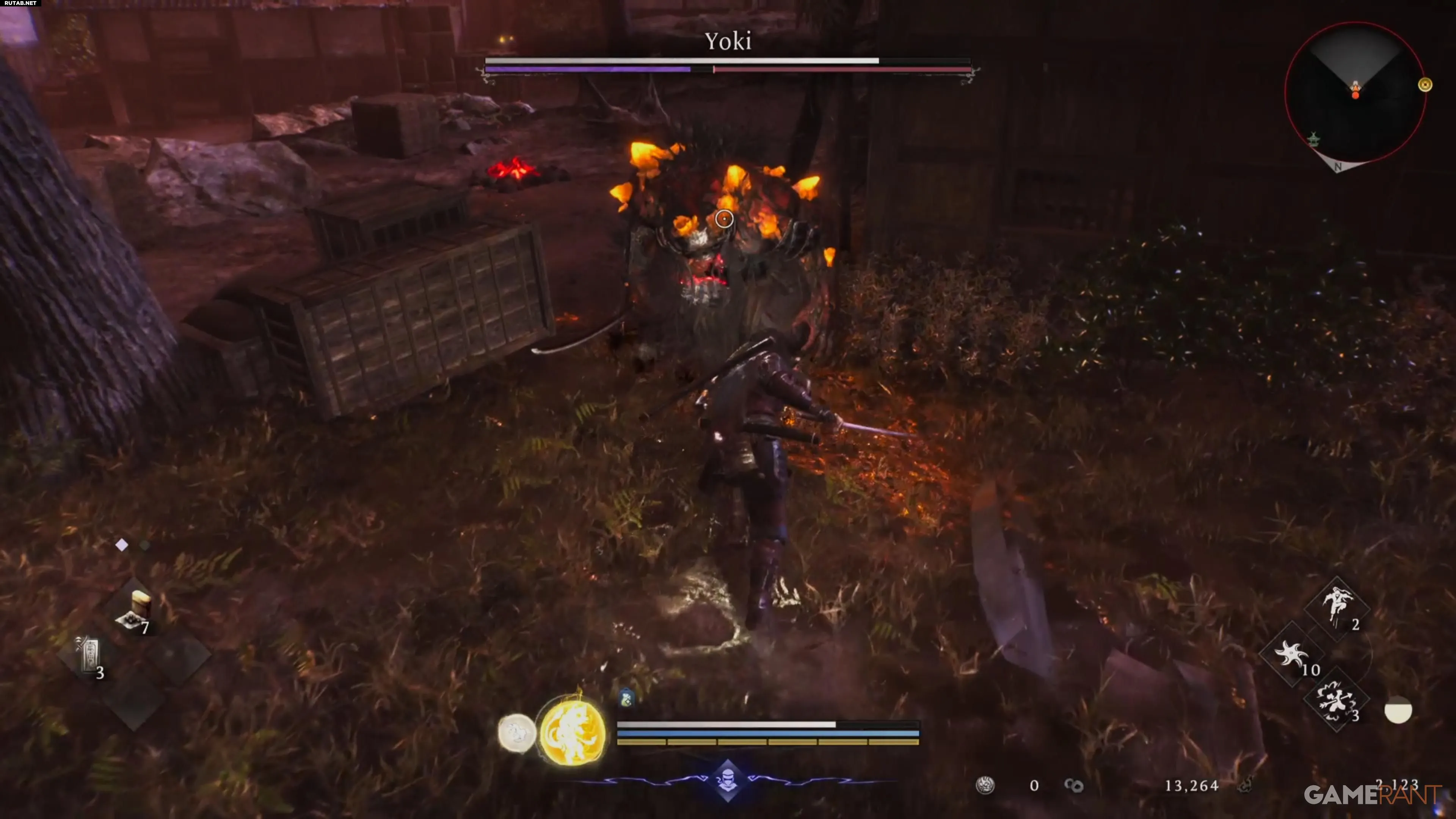 Используйте стили ниндзя и самурая, чтобы победить мини-босса Ёки. Зайдя внутрь дома, вы обнаружите, что семья мужчины уже мертва. После короткой сцены вы получите награды: