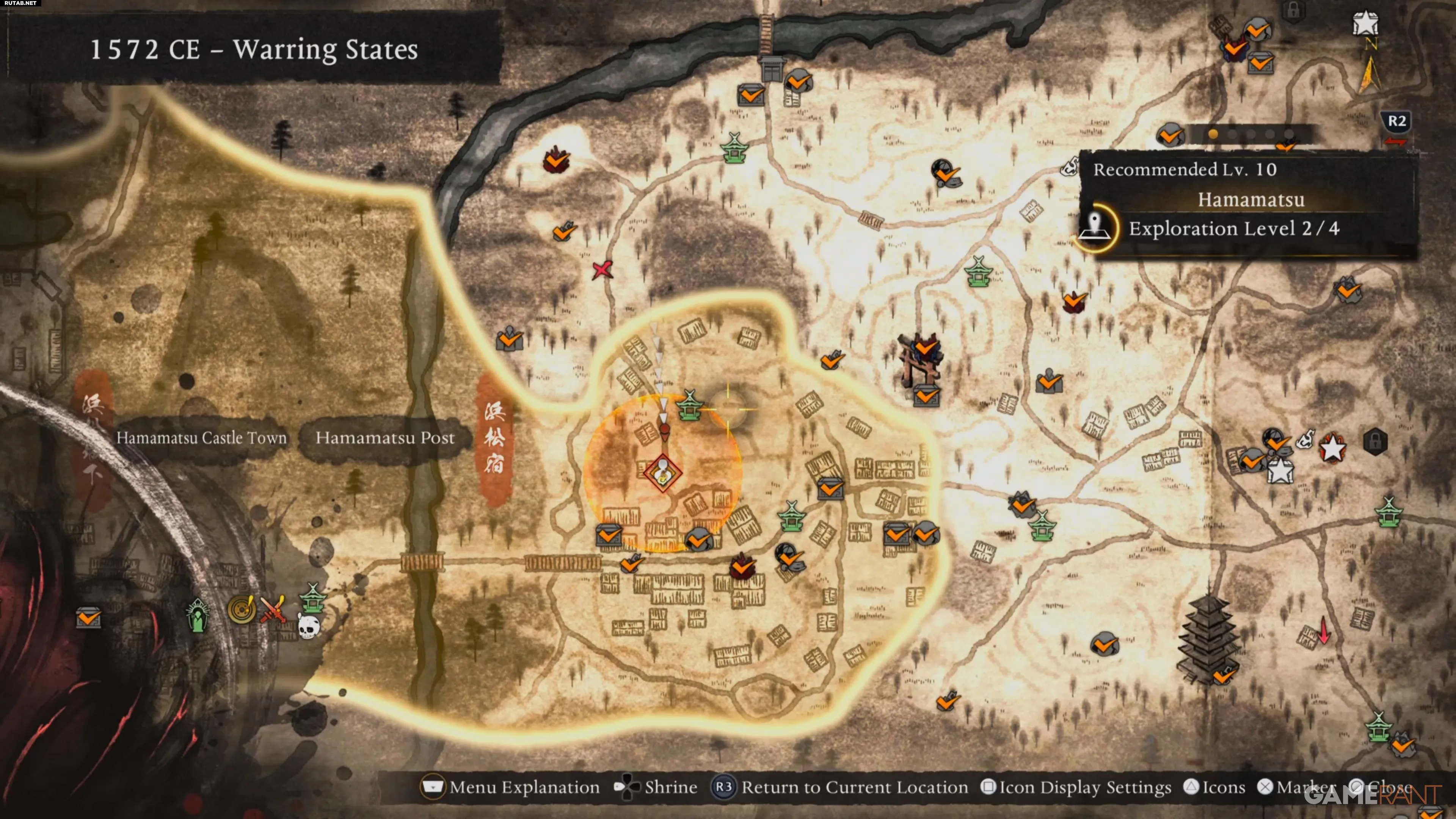 Цель обновится: теперь нужно отнести лекарство семье погибшего. К северу от региона Хамамацу находится святилище. Рядом с ним — круговая зона для поиска. От святилища идите прямо к этой зоне: у двери второго дома справа вас будет ждать ёкай.