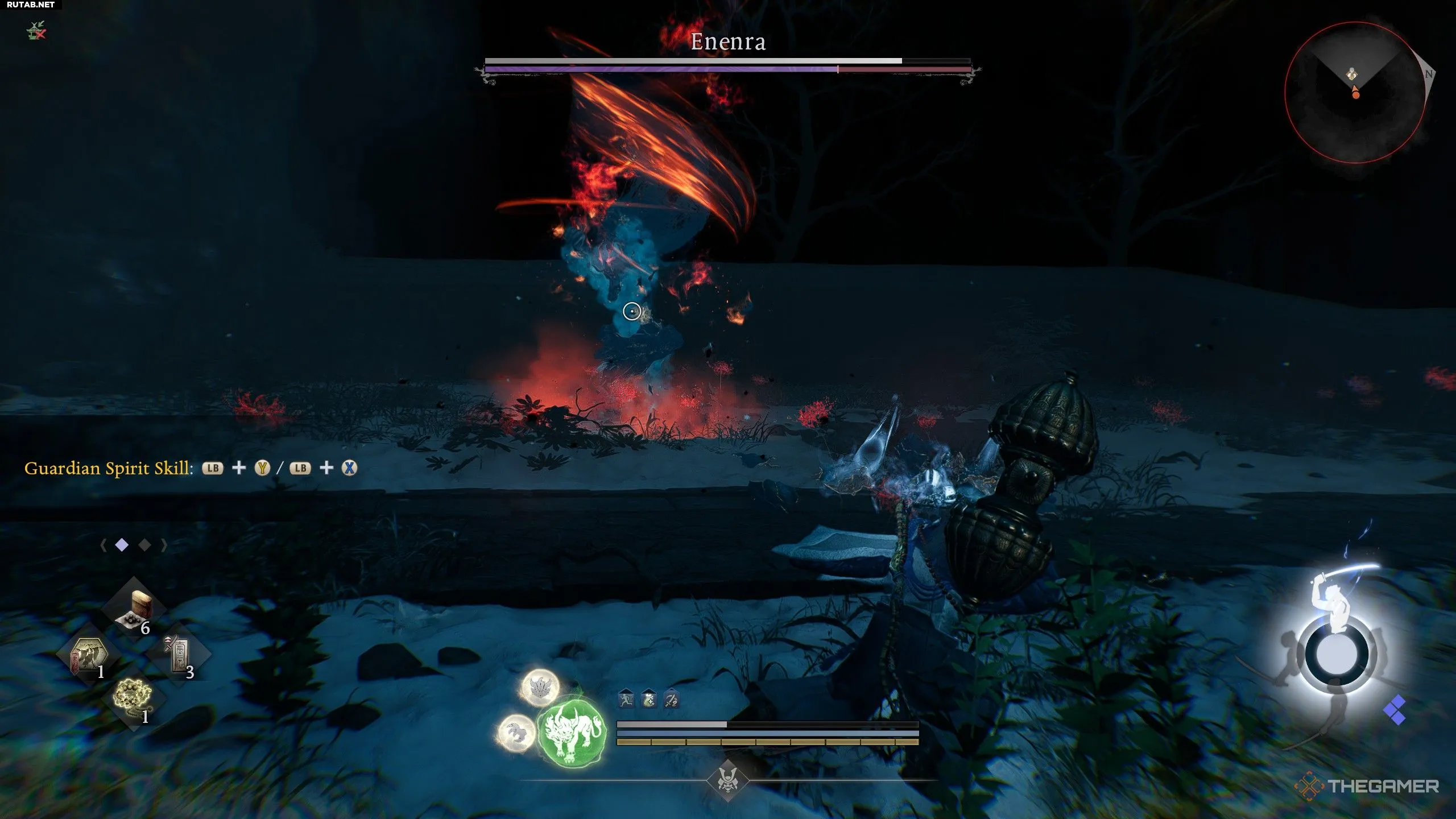 Чтобы найти этого босса, отправляйтесь в замок Родзёмон на юге Хатидзё. Пробивайтесь через замок, пока не достигнете святилища «Родзёмон: Проспект Мибу», а затем следуйте по тропе вдоль обрыва к большой, поврежденной в бою башне. Внутри башни поднимитесь по лестнице, вместо того чтобы идти дальше в гору. Наверху взаимодействуйте со свитком, чтобы телепортироваться в другое измерение, где вам предстоит сразиться с тремя волнами врагов, прежде чем будет вызван босс.Как победить Энэнра