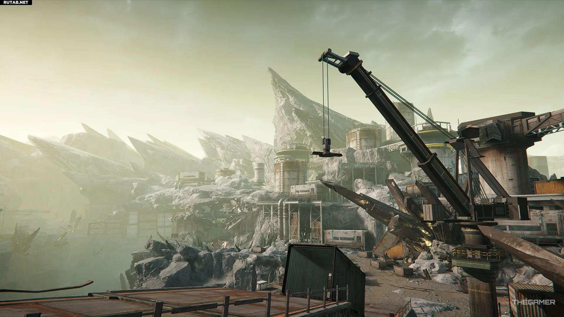 - Сначала воспользуйтесь лифтом-тросом, затем развернитесь и бросьте взрывпакет, чтобы уничтожить Ядро Порчи. После этого почините консоль на другом конце. Поднимите оба груза так, чтобы они образовали путь к Аурилену в воздухе.