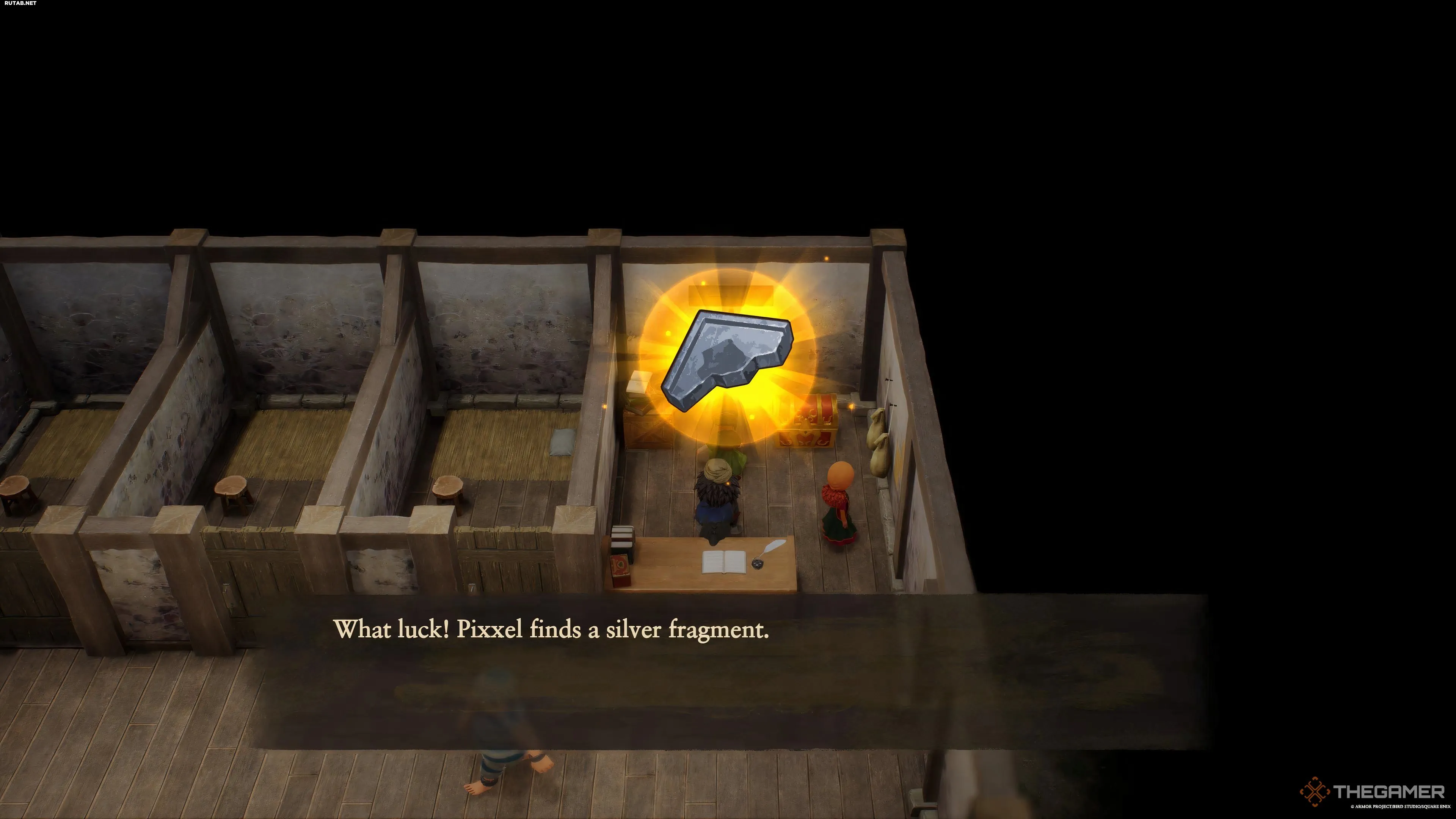 - (Прошлое) Страдание Пилигрима: После переноса в Страдание Пилигрима в прошлом регионе Аббатства Всеремесел, вы найдёте два сундука у западной стены, а рядом с ними — фрагмент.