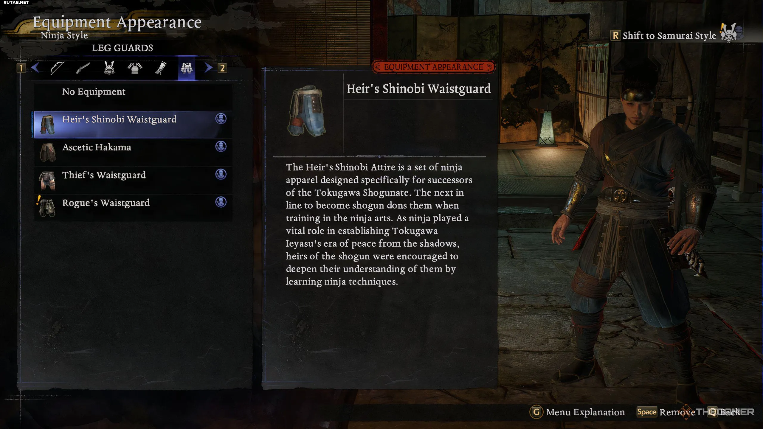 Например, вы можете носить набедренник «Пояс вора» из-за высокого показателя защиты, но его внешний вид (короткие шорты) не подходит к вашему ниндзя-стилю. Благодаря трансмоггированию вы можете изменить его внешность на вид «Набедренника наследника ниндзя».