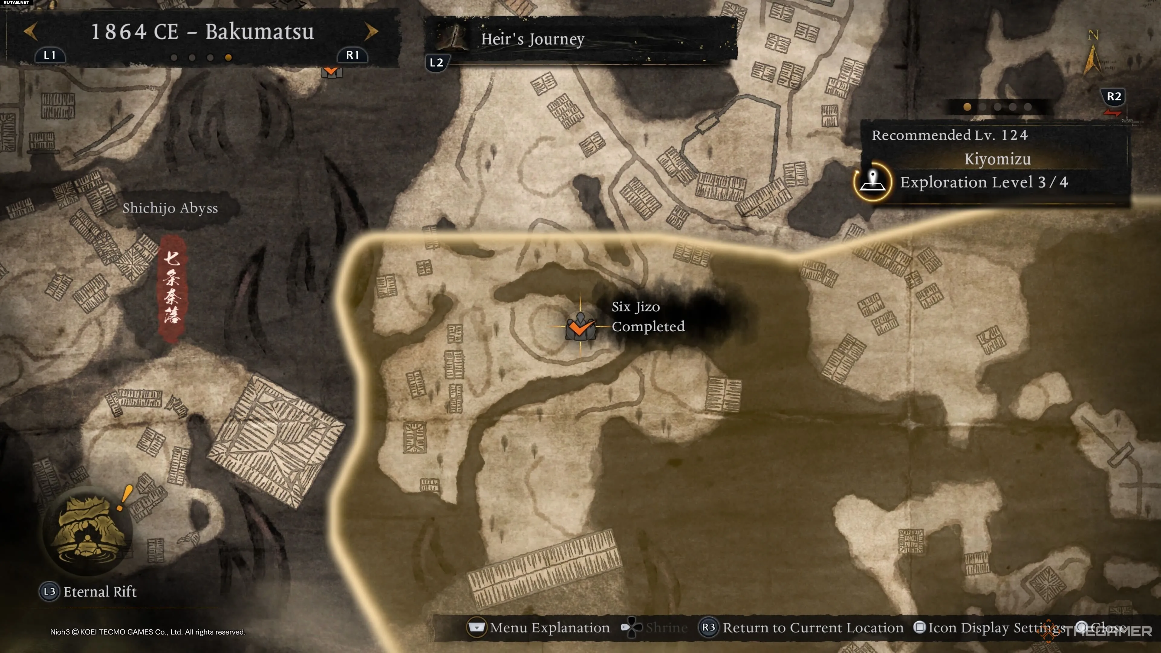 Шесть Дзидзо в Киёмидзу, к счастью, находятся не в самой храмовой части, их можно найти недалеко от святилища Лестница Отовы в Гионе. Отсюда направляйтесь к Киёмидзу, и вы найдёте статую Шести Дзидзо на отдельном островке рядом с Духовными жилами. Вам нужно будет найти голову статуи и вернуть её, но она находится всего в нескольких шагах от самой статуи.