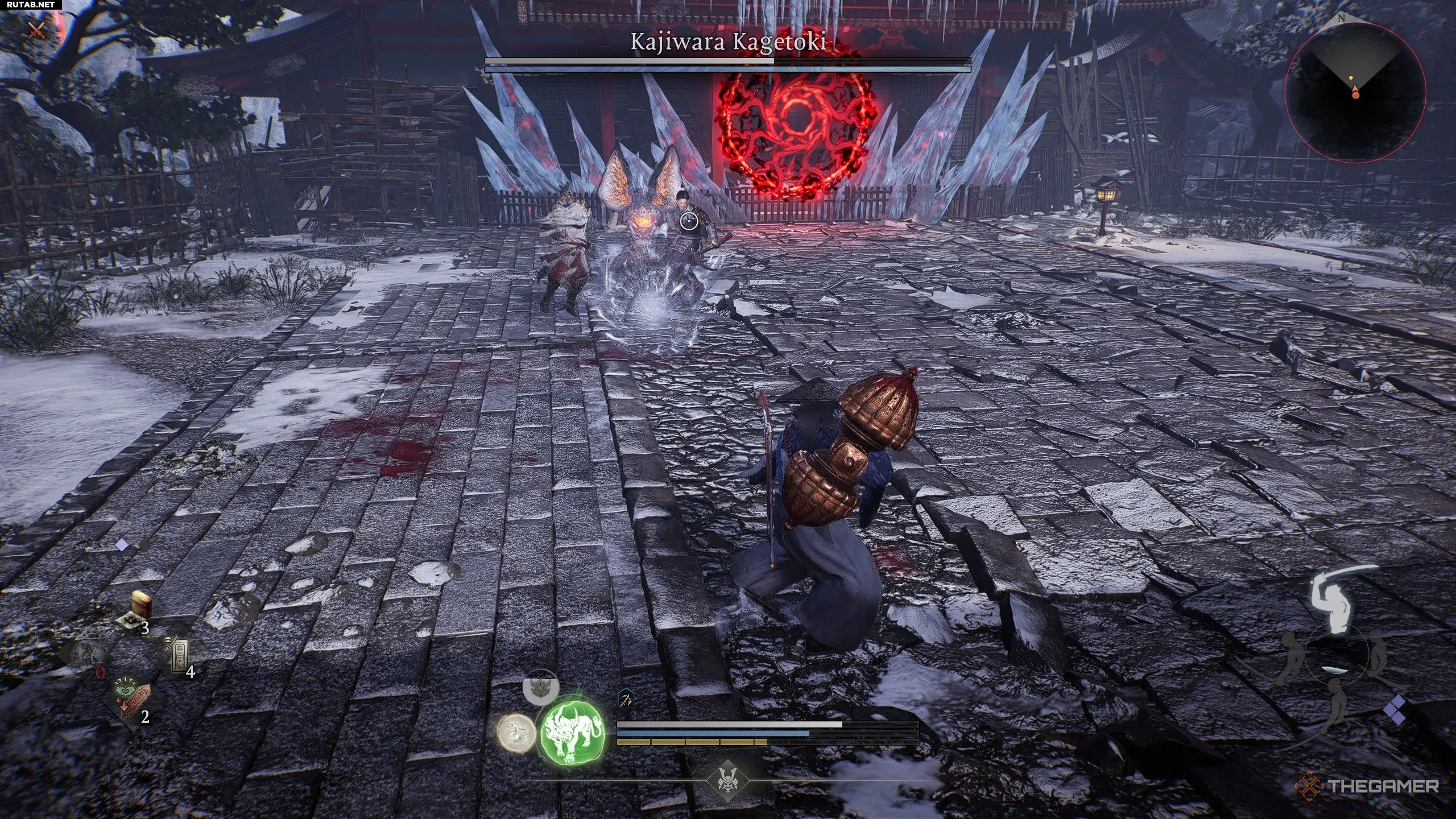 ">Вооружившись парой топориков, Кадзивара Кагэтоки — это босс, который фокусируется на том, чтобы держать вас на расстоянии, постоянно призывая различных ёкаев для атаки. Хотя у вас будет NPC-союзник, Кагэтоки часто будет игнорировать его, предпочитая метать в вас топорики с безопасной дистанции.