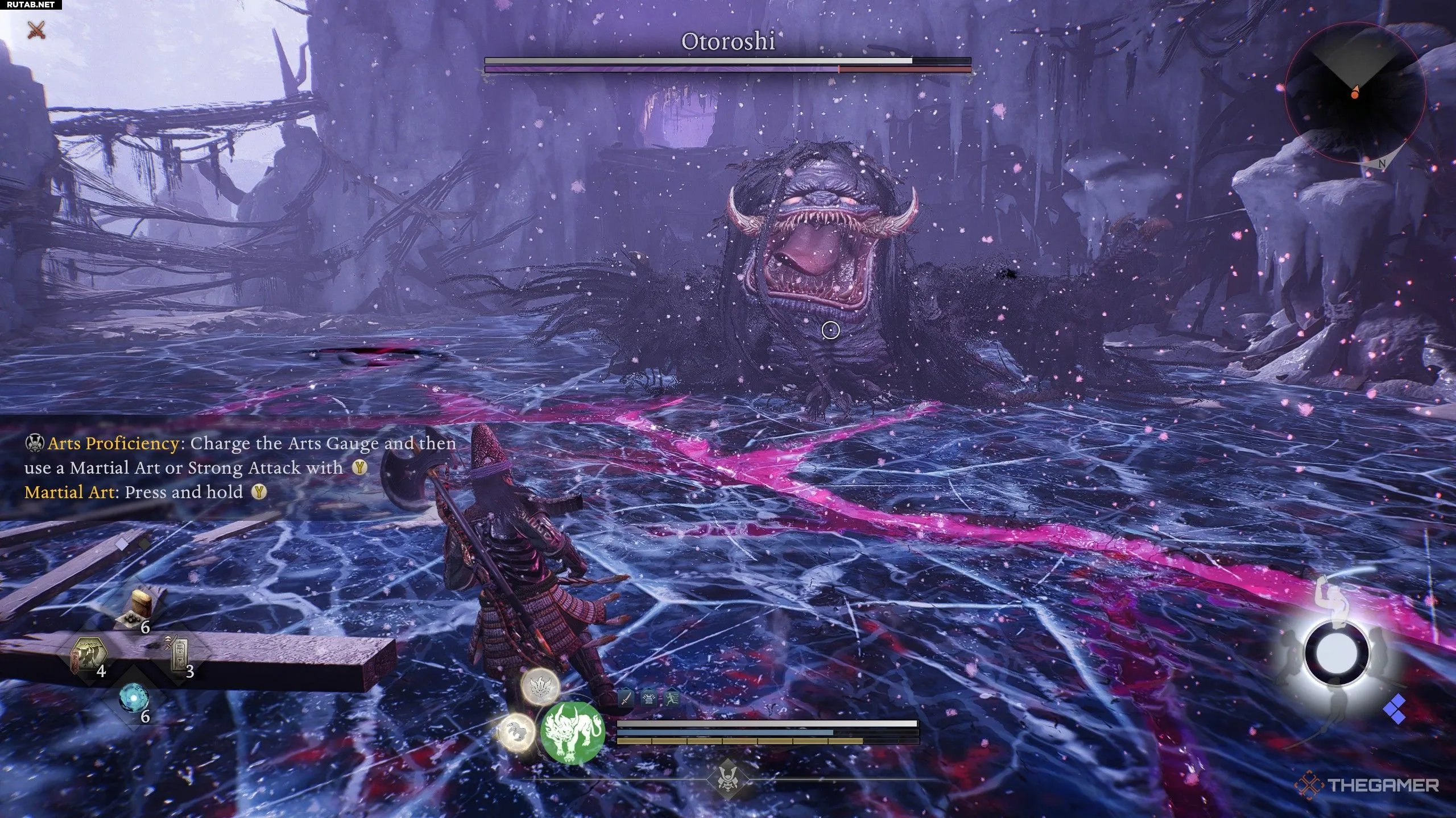 Перед боем с Отороси рекомендуется надеть любую броню или талисманы, дающие сопротивление водным (ледяным) атакам. Этот босс разбрасывает по арене глыбы льда, поэтому любая возможность снизить этот урон может серьёзно повлиять на исход схватки.