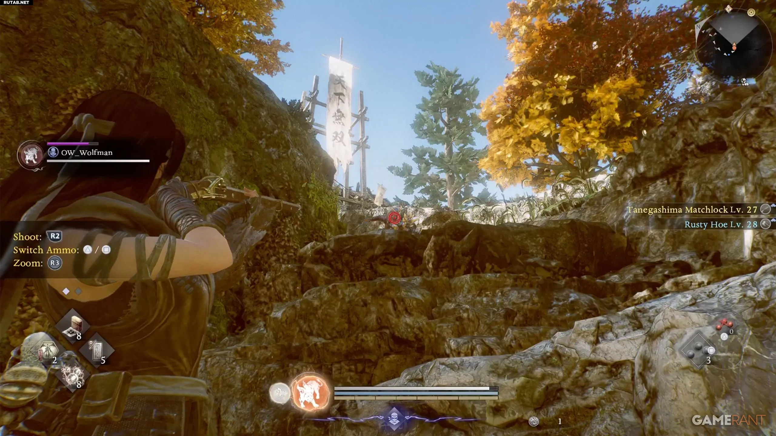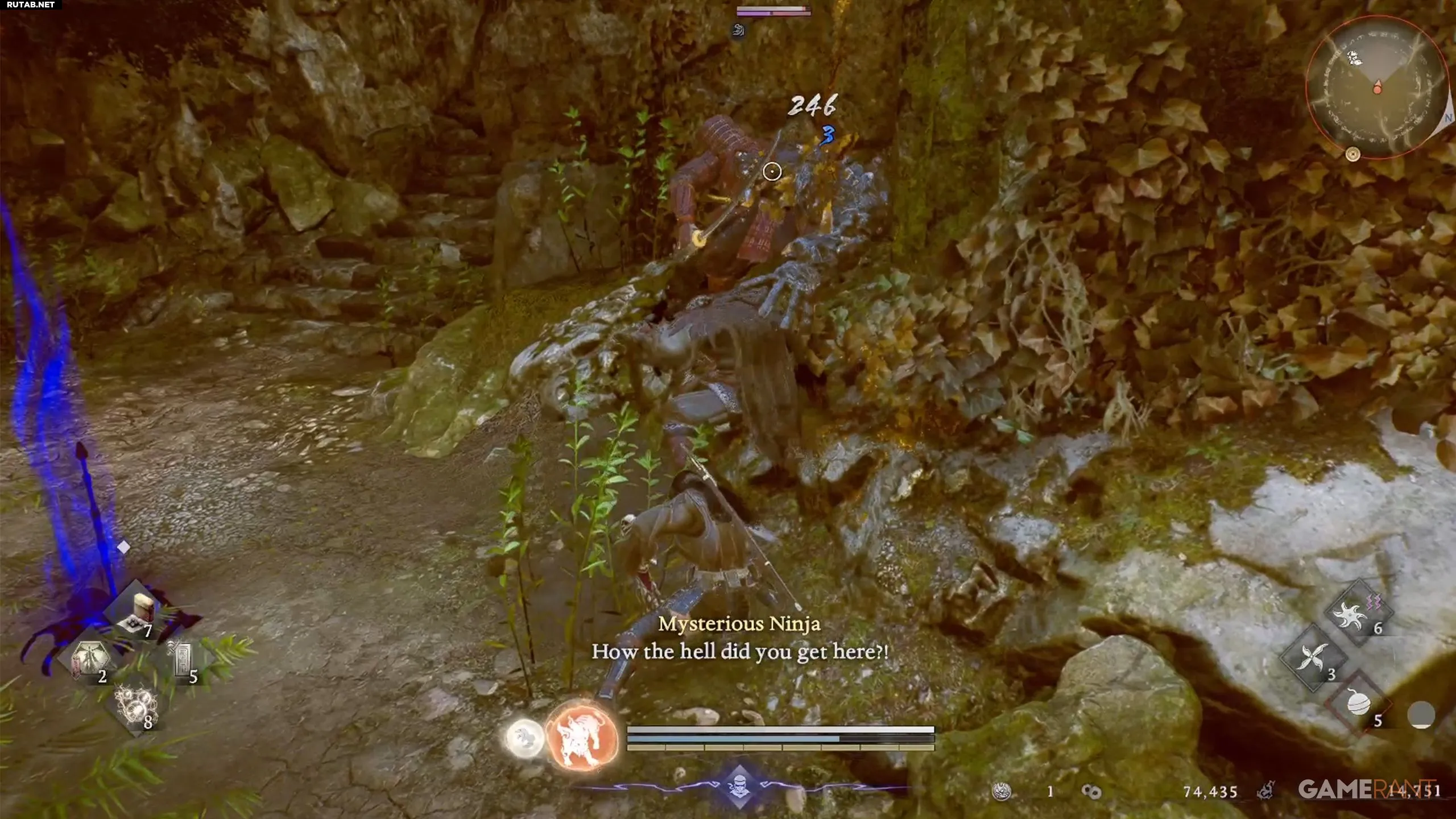 Продолжайте движение и помогите Таинственному ниндзя в бою с врагами. После битвы поговорите с ним — он снова попросит о помощи, чтобы убить босса на вершине холма. Поверните на юг и налево, зайдите в дом и выйдите с другой стороны. Двух демонов наверху можно устранить выстрелом в голову из дальнобойного оружия.