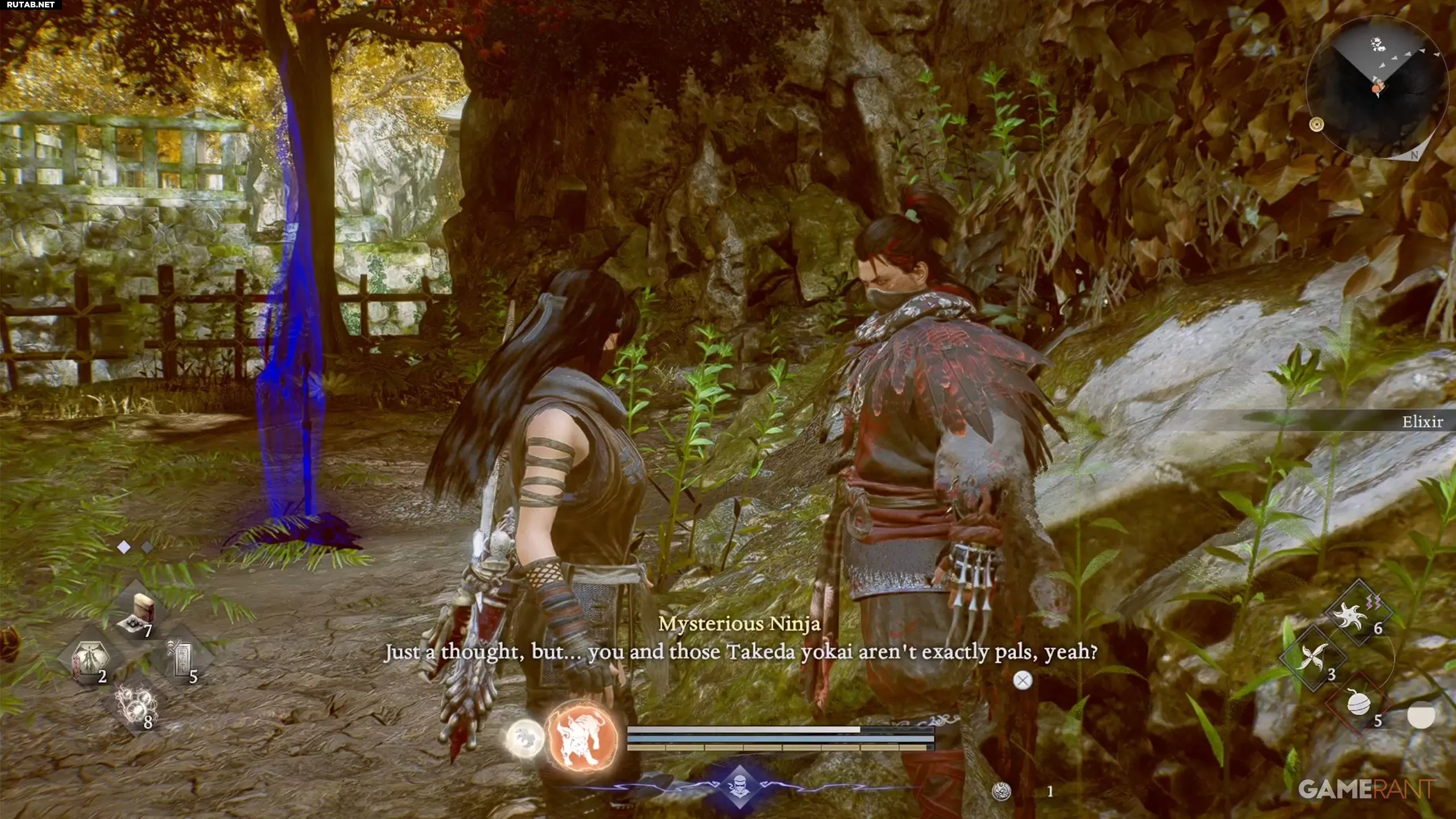 Исследуя местность Ииноя возле святилища «Перекресток Омомодзи», игроки услышат голос Таинственного ниндзя, который затем исчезнет.