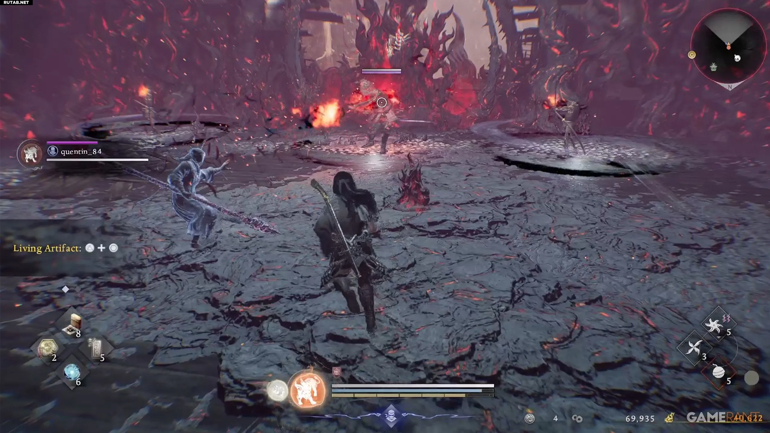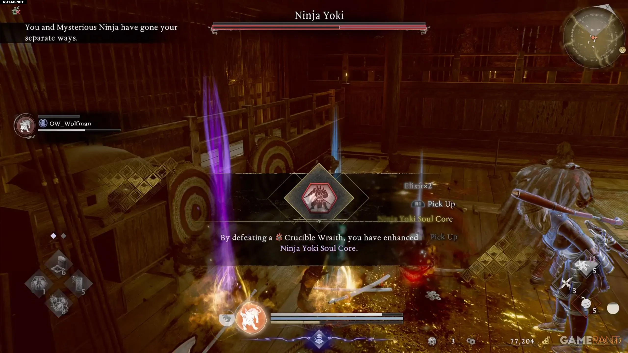 Вернитесь к зданию и зайдите внутрь, чтобы сразиться с врагами. В конце концов появится Ниндзя-Ёкай, и вам нужно будет вместе с ниндзей победить Призрака горнила. К счастью, вы можете призвать на помощь другого игрока из Благодатной могилы.