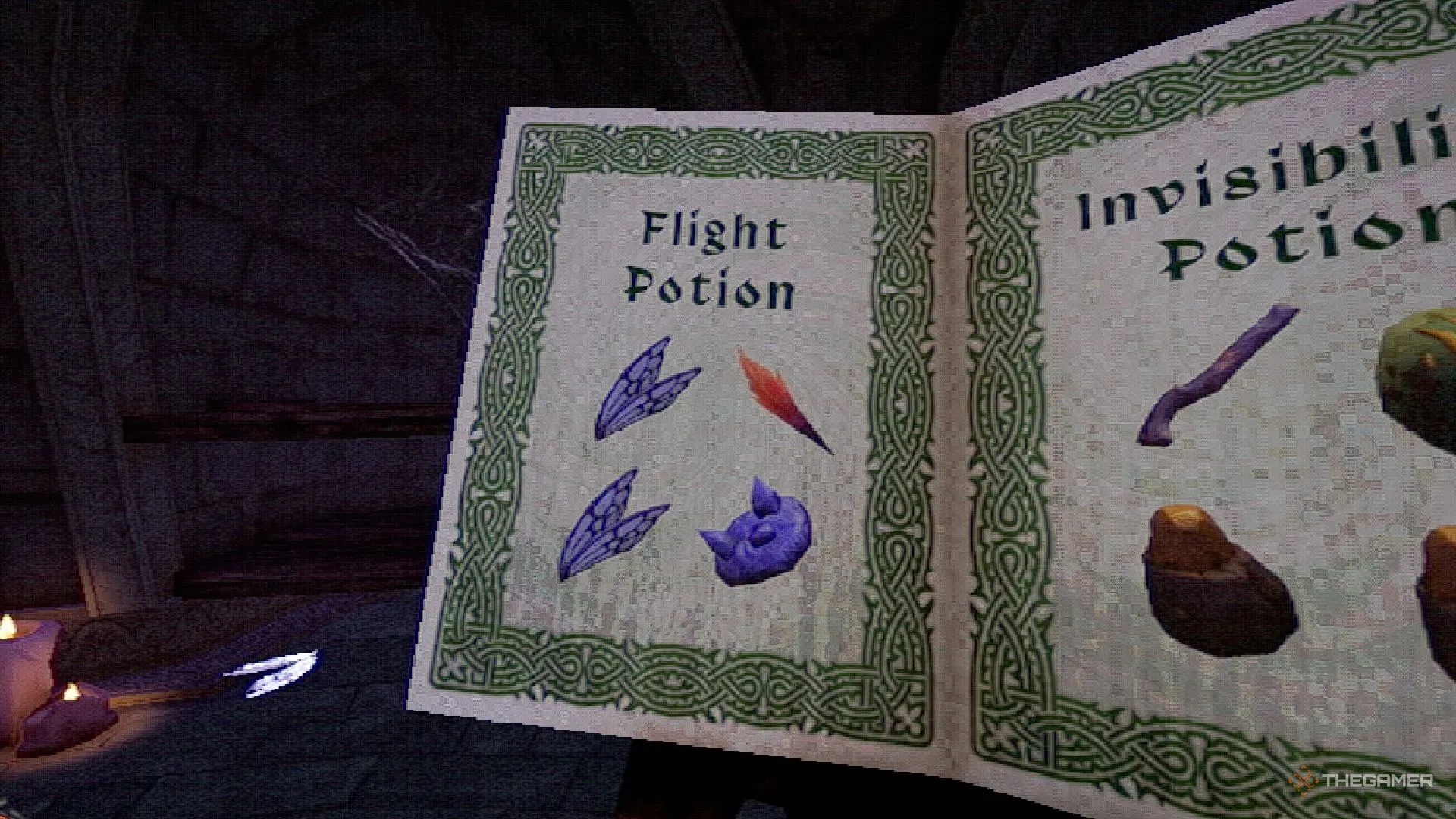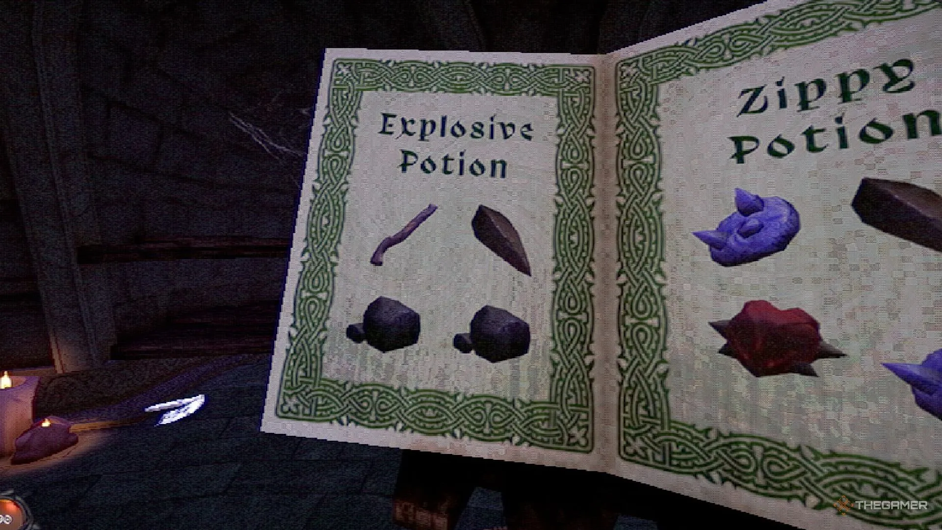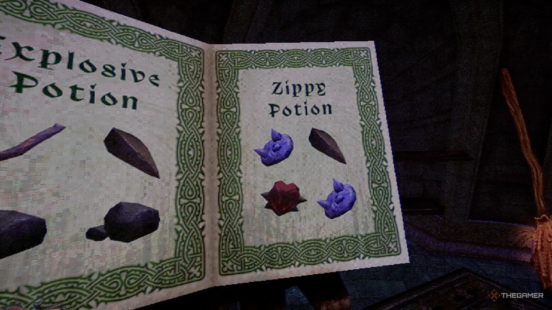 Ниже представлена полная таблица рецептов всех десяти зелий, доступных в игре. Ингредиенты, отмеченные как «x2», нужно добавить в котёл дважды.