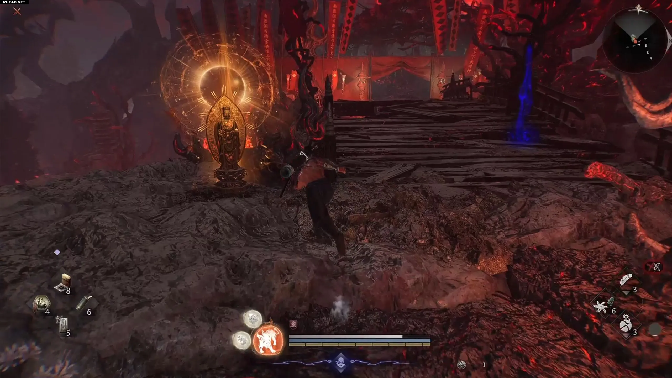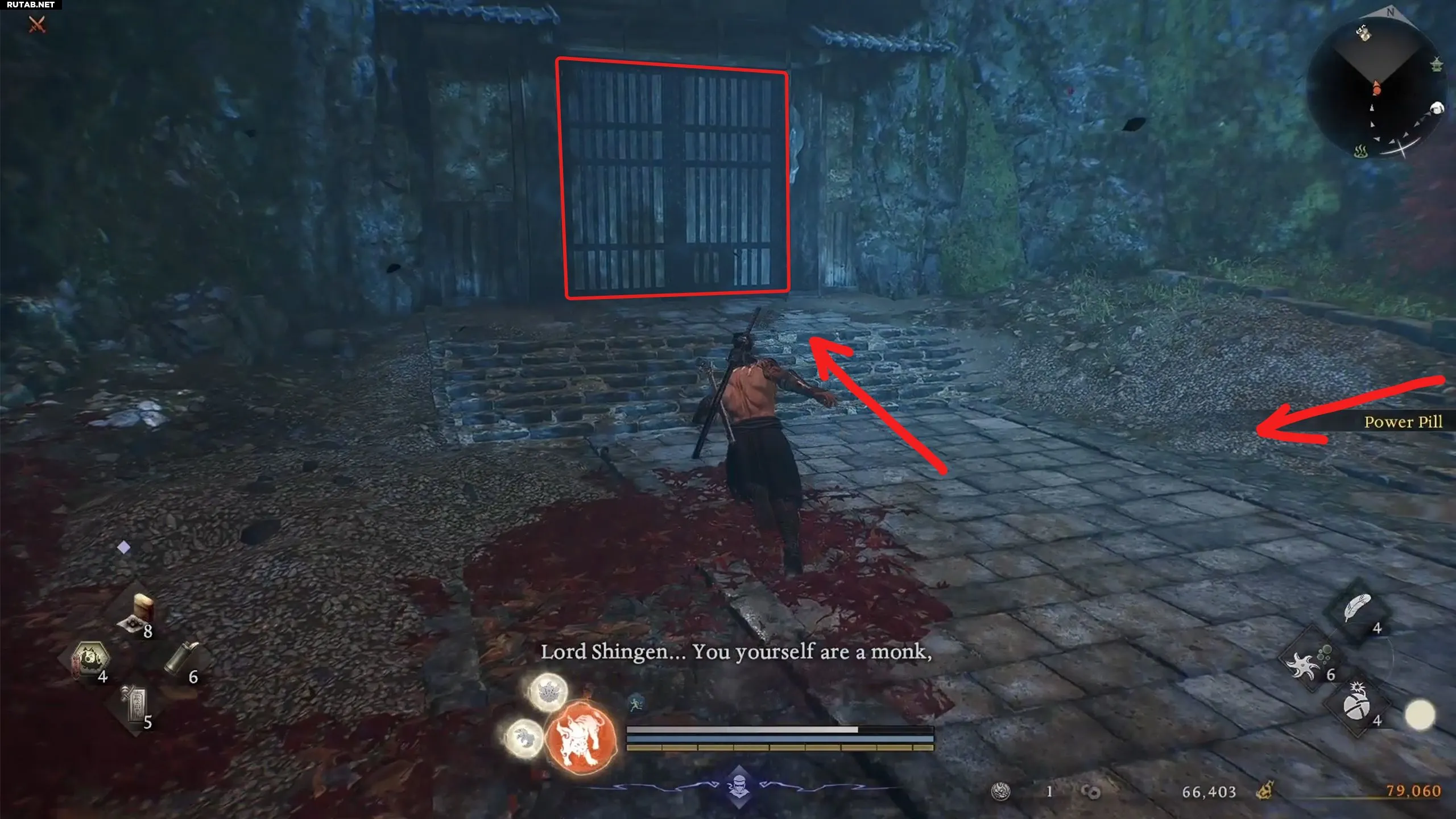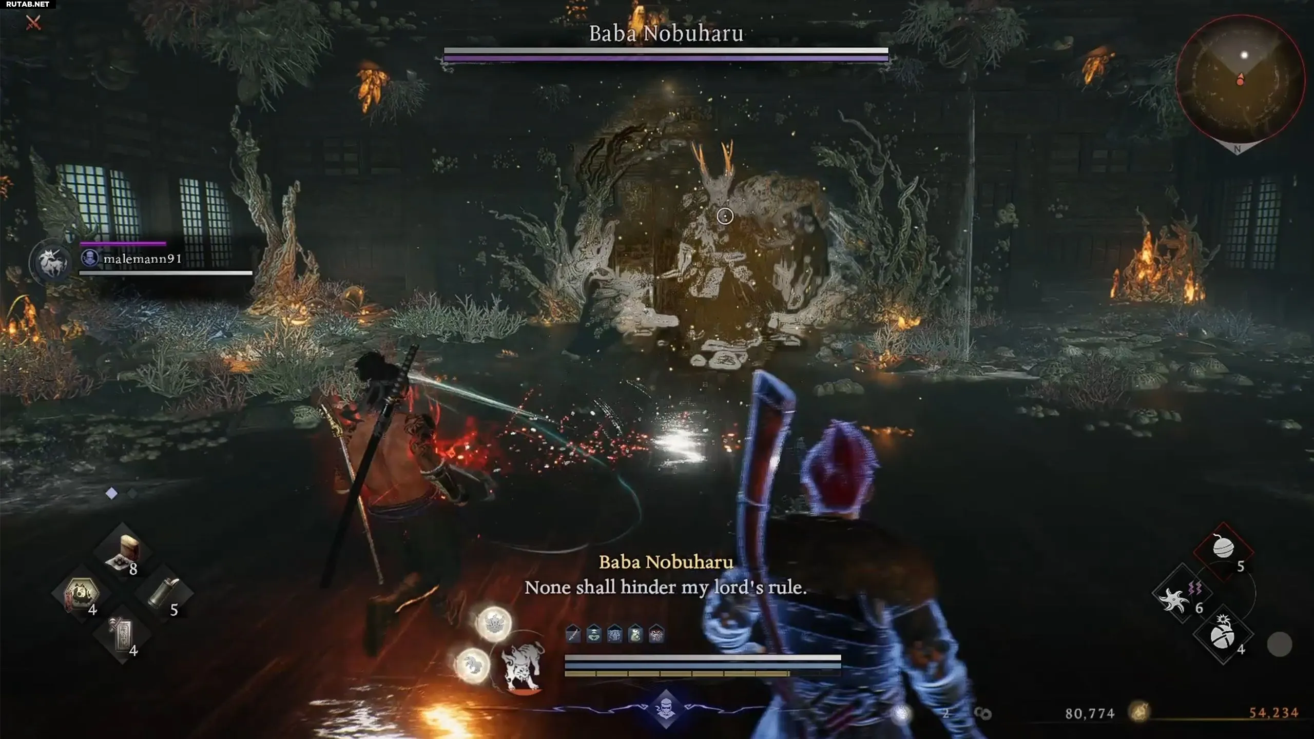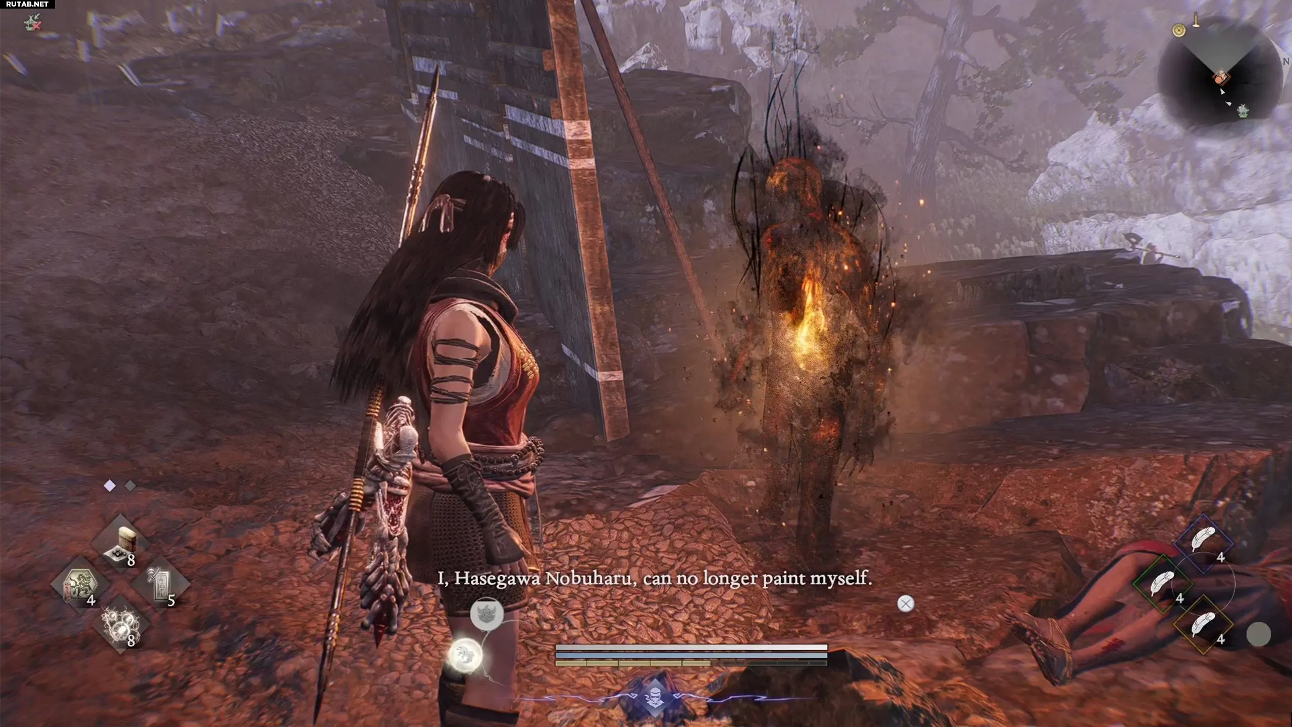 Добравшись до святилища «Входные ворота замка Футамата», обойдите врагов и поднимитесь на верхний этаж. Там вам предстоит победить Бабу Нобухару. Это завершит одну из основных миссий и даст вам амулет. Отнесите его призраку, и он отправит вас на поиски следующего предмета.