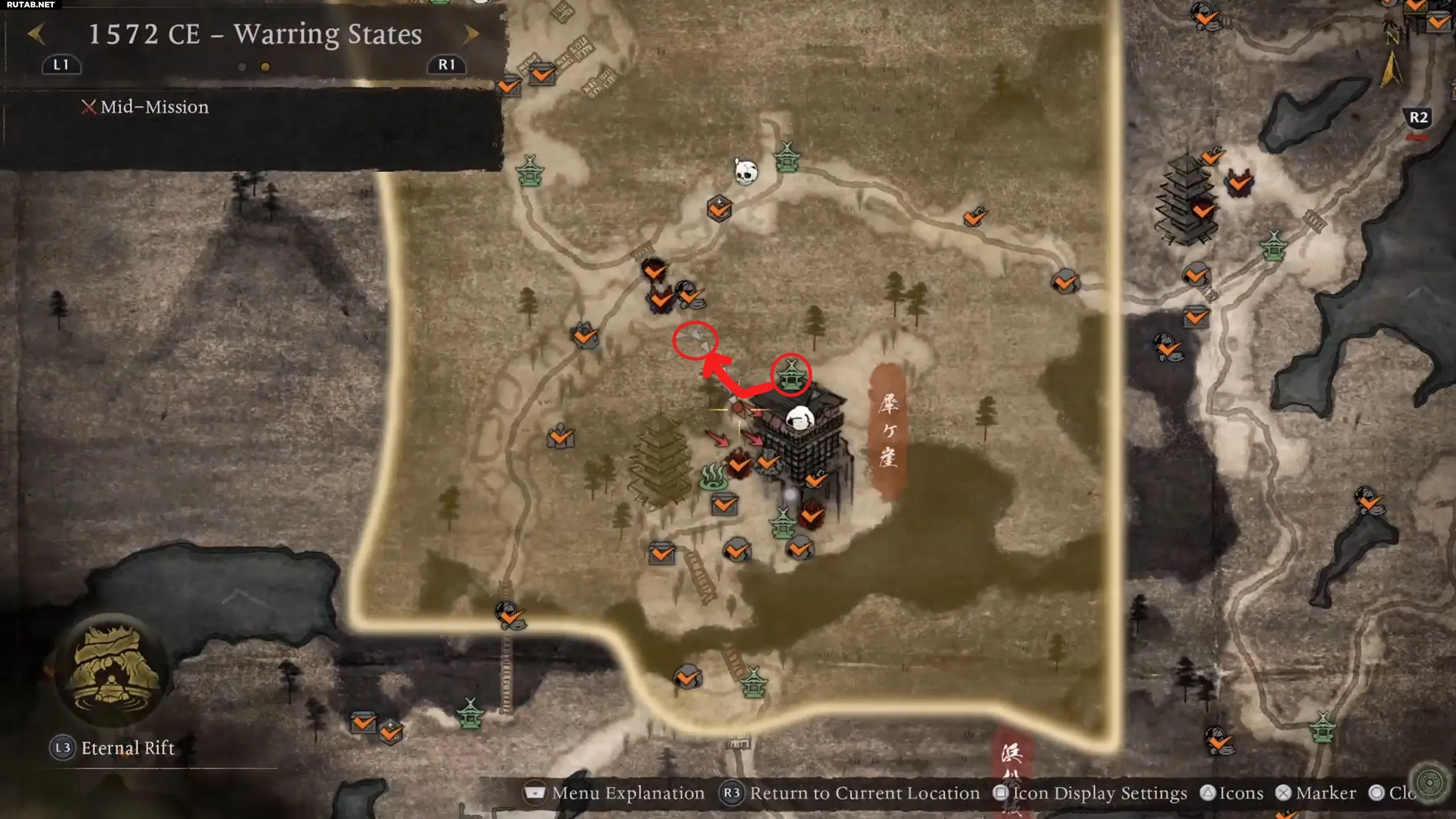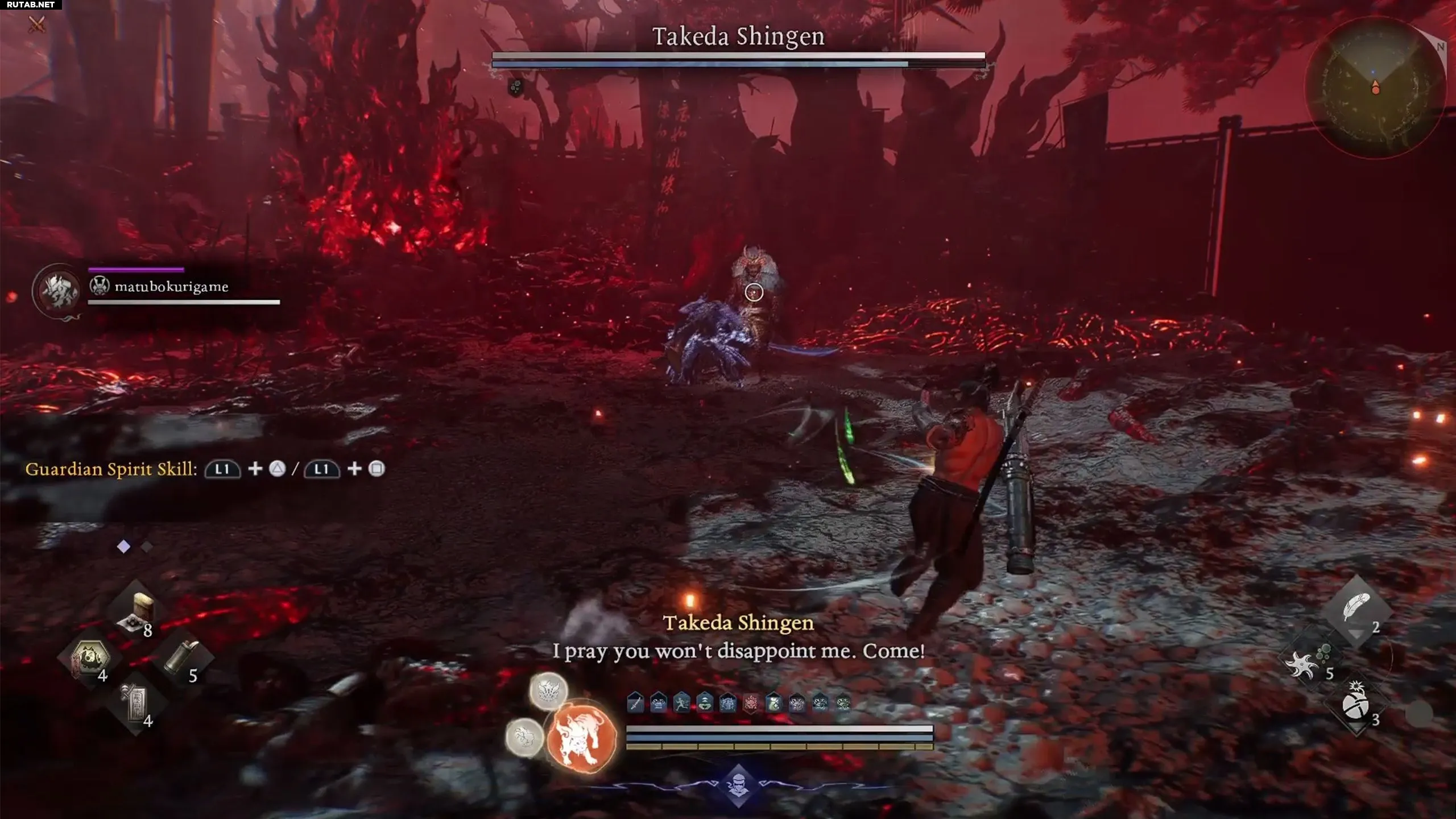 Исследуя локацию, вы в конце концов столкнетесь с самим Такэдой Сингэном. Это сильный противник, наносящий огромный урон. Победив его, вы получите Веер Сингэна. Отдайте веер призраку, чтобы продолжить выполнение мифа.