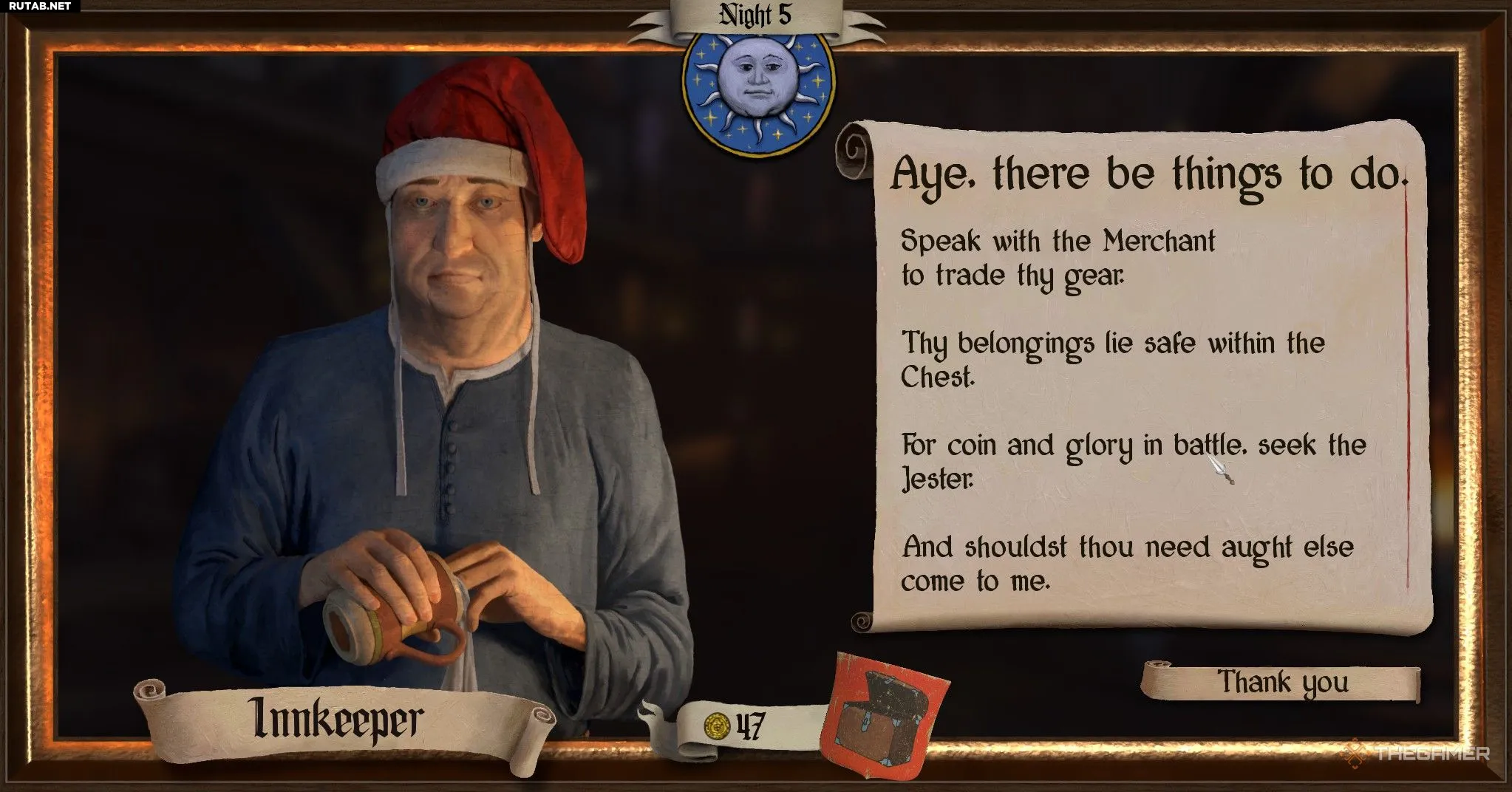 Если у вас не хватает наличности или вы просто хотите получить доход с низким риском, выполнение заданий для Трактирщика — ещё один надёжный вариант. Отдыхая в таверне, нажмите на трактирщика, и иногда появится опция «помочь», предлагающая небольшое задание за деньги.