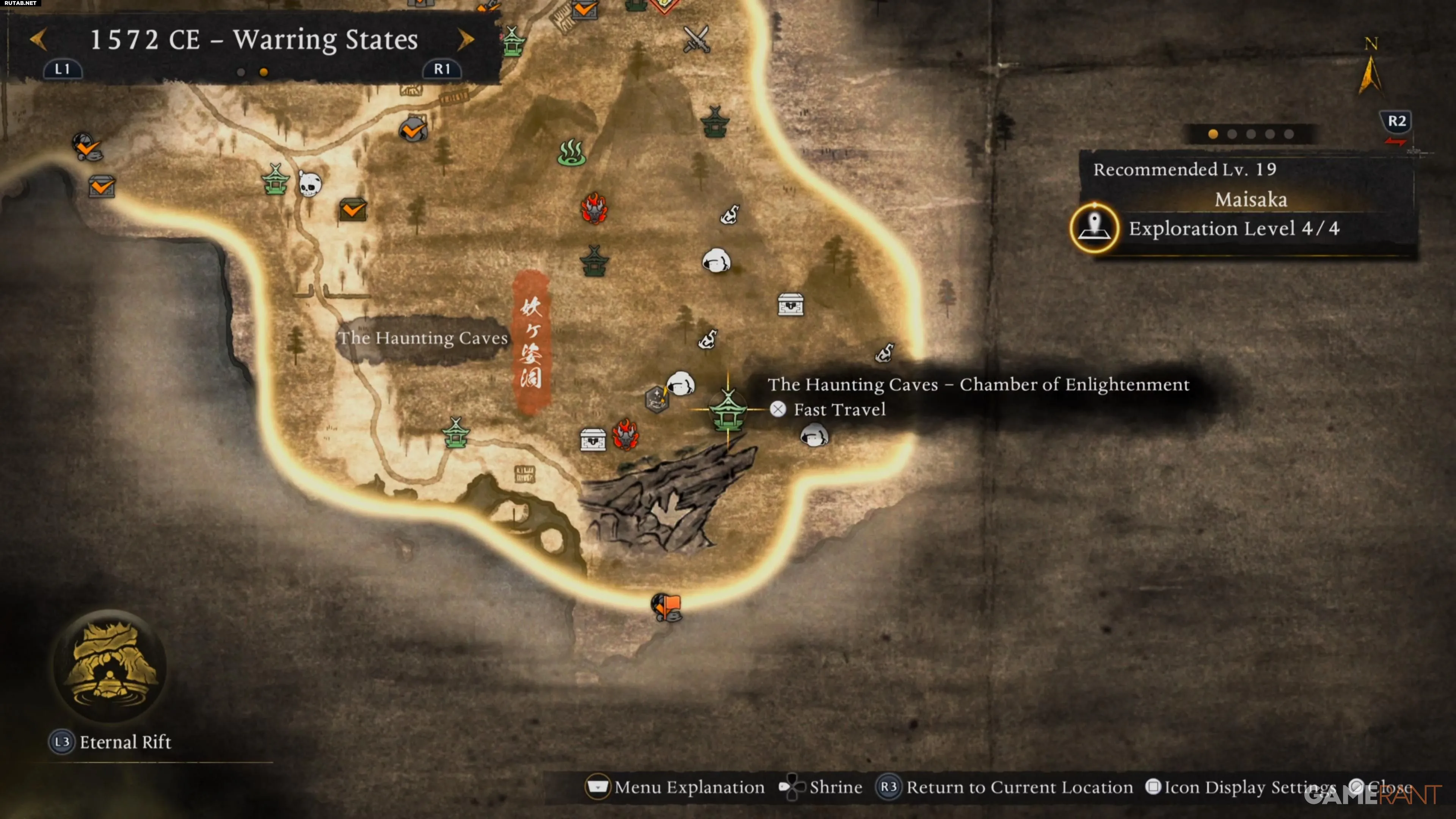 Ваша следующая цель — отправиться на юг от Майсака к пещерам и устранить угрозу внутри. Следуйте по единственной дороге на юг, пока не достигнете святилища у Проклятых пещер.