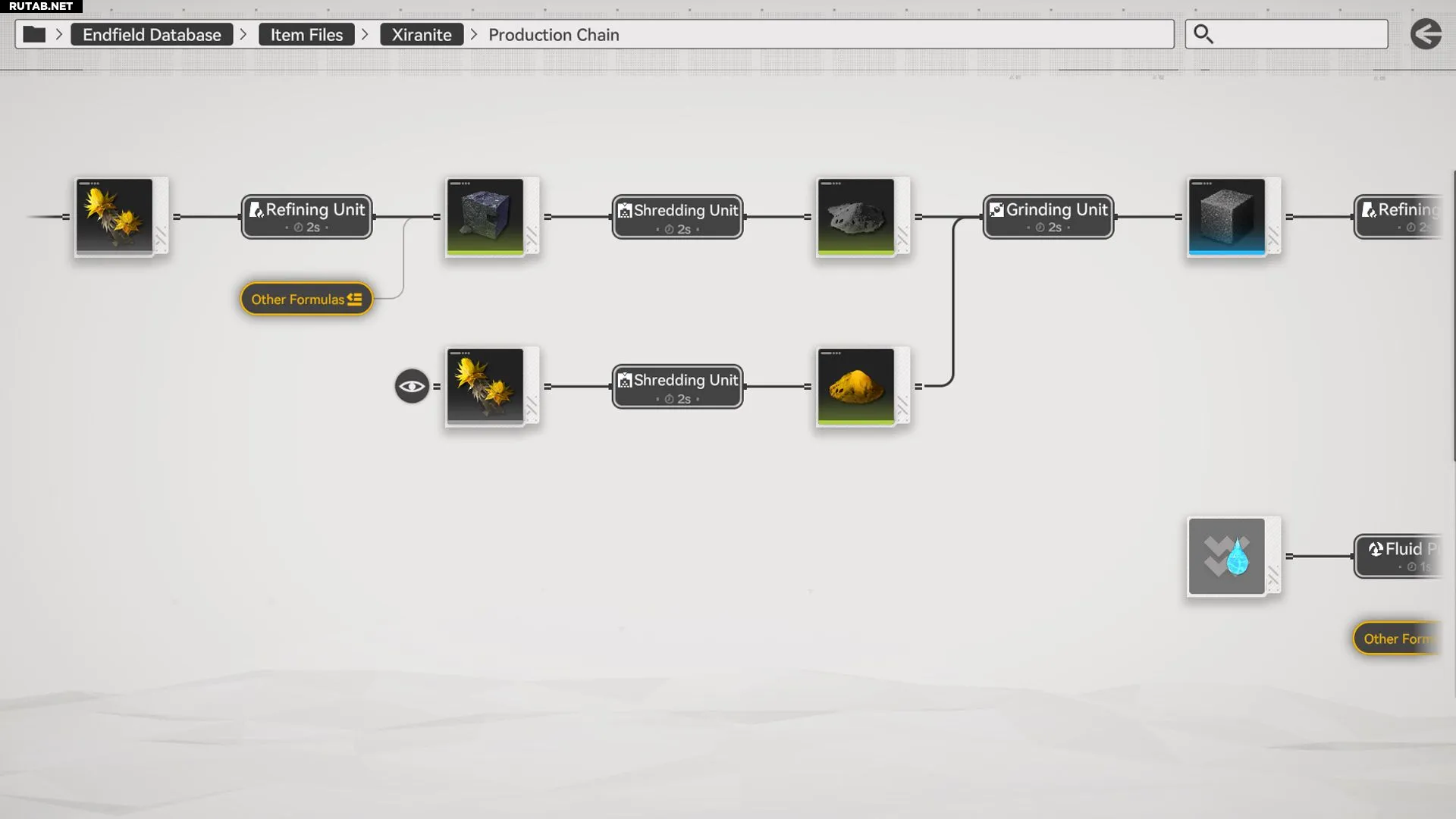 - Жидкий Ксиранит: 1 Ксиранит + 1 Вода (производится в Реакторном тигле).