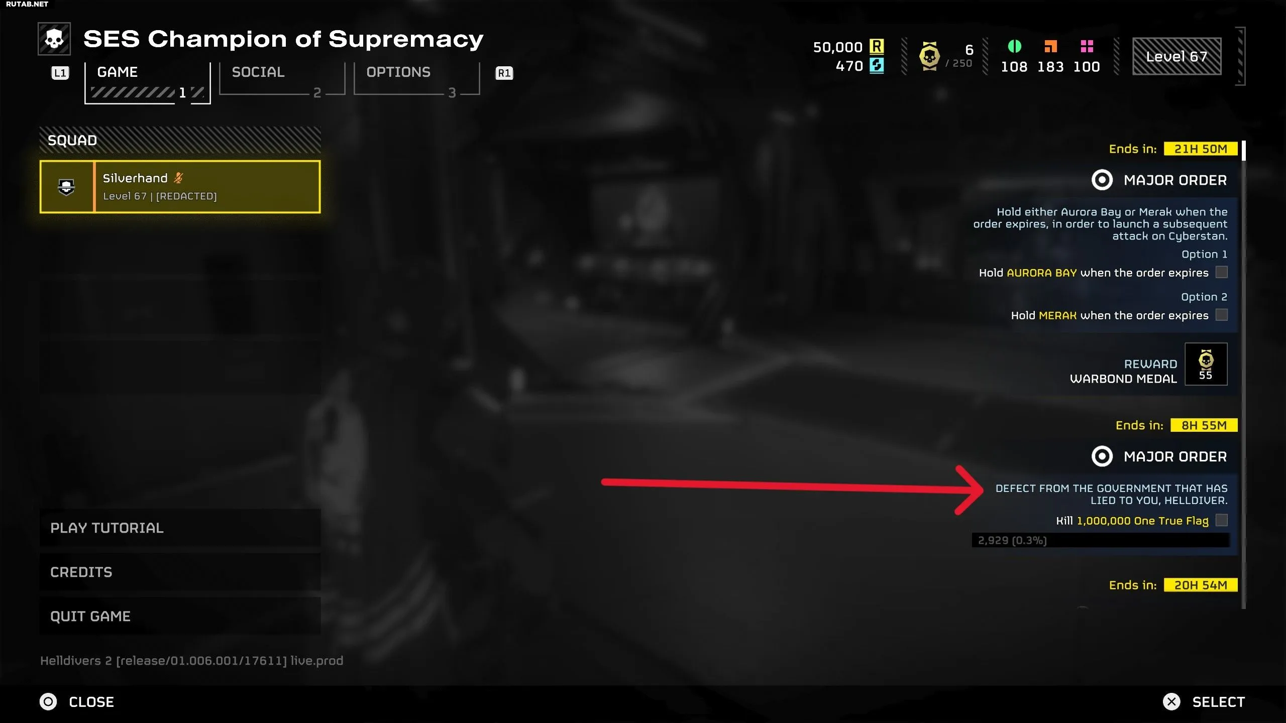Приказ об уничтожении Единственного Истинного Знамени — это часть сюжета игры. Согласно лору, автоматоны взломали коммуникации Super Earth, чтобы отвлечь и деморализовать Адский Десант на пути к их родному миру, Киберстану. Этот приказ — попытка истощить резервы в 200 000 000 бойцов, поэтому лучше проигнорировать его и сосредоточиться на планете Мерак.