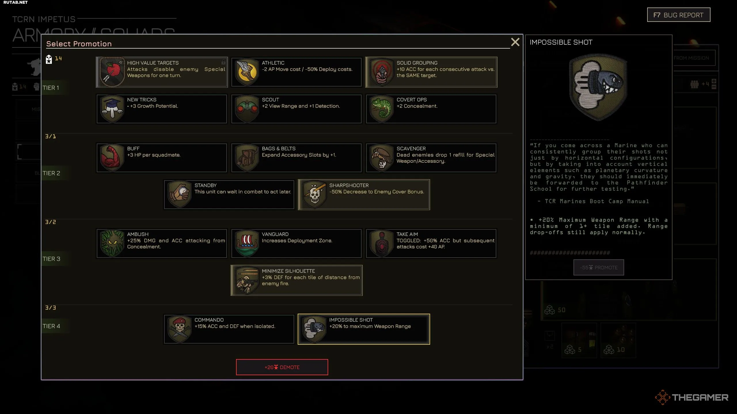 Вы также можете понизить лидера отряда, чтобы вернуть часть очков повышения и выбрать для него новый перк при следующем повышении.