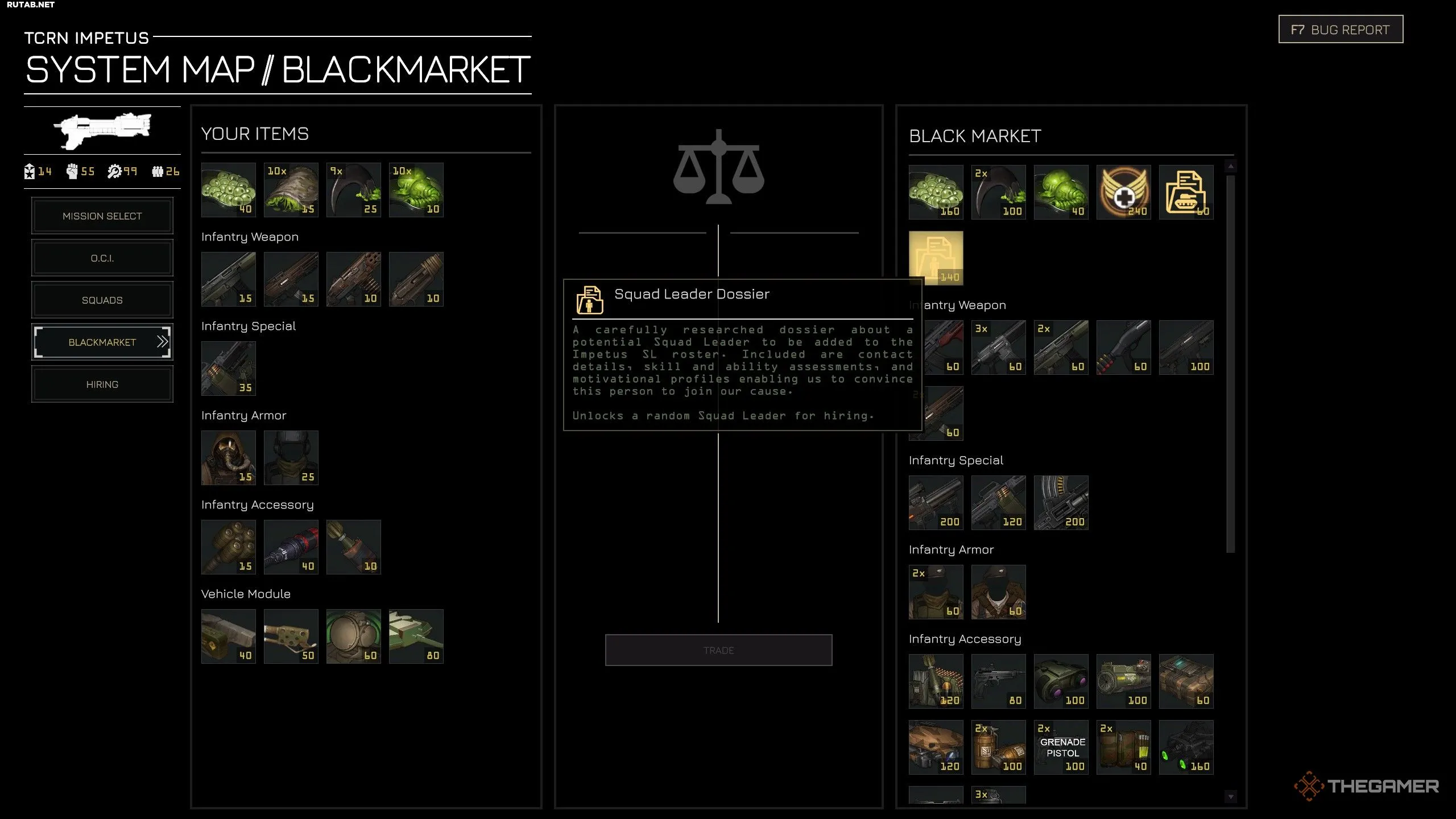 После первоначального выбора четырёх лидеров отряда большинство остальных можно получить на Чёрном рынке. Это внутриигровой магазин, где используется исключительно система бартера. Вы получаете много товаров, предназначенных только для торговли, но также можете сдавать ненужное снаряжение и оружие.