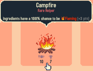 Или можно взять помощника «Костер»! Тогда все ваши ингредиенты будут начинать раунд уже горящими!