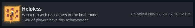 Помощники, которые фокусируются на сырых или овощных ингредиентах, идеально для этого подходят! Помните, что ключ к лёгкому выживанию — это помощники с масштабируемыми очками! «Ненавистник мяса» и «Ненавистник помощников» отлично подойдут! «Ненавистник помощников» не так хорош, так как вы начинаете с «Загруженных костей».