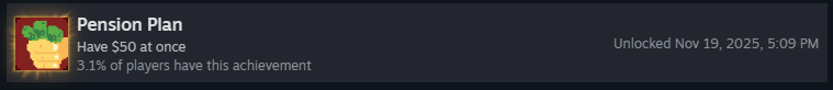 Заработайте $10 за один раунд! Это достижение можно получить в наборах «Нагруженная картошка» или «Золотой», так как они начинают игру с корнеплодами и/или золотыми ингредиентами!