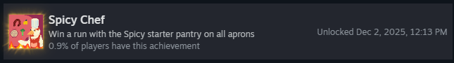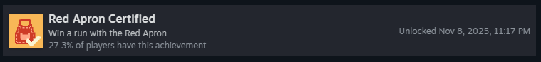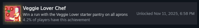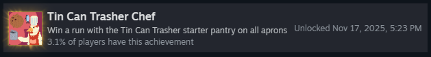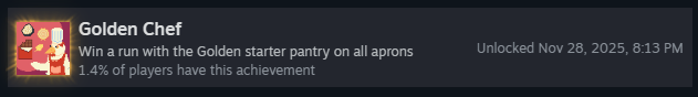 Пройдите забег на каждом уровне сложности со стартовым набором «Острая кладовая»! Это включает: «Зелёный фартук», «Жёлтый фартук», «Синий фартук» и «Красный фартук». Как только вы победите на всех, вы получите достижение!