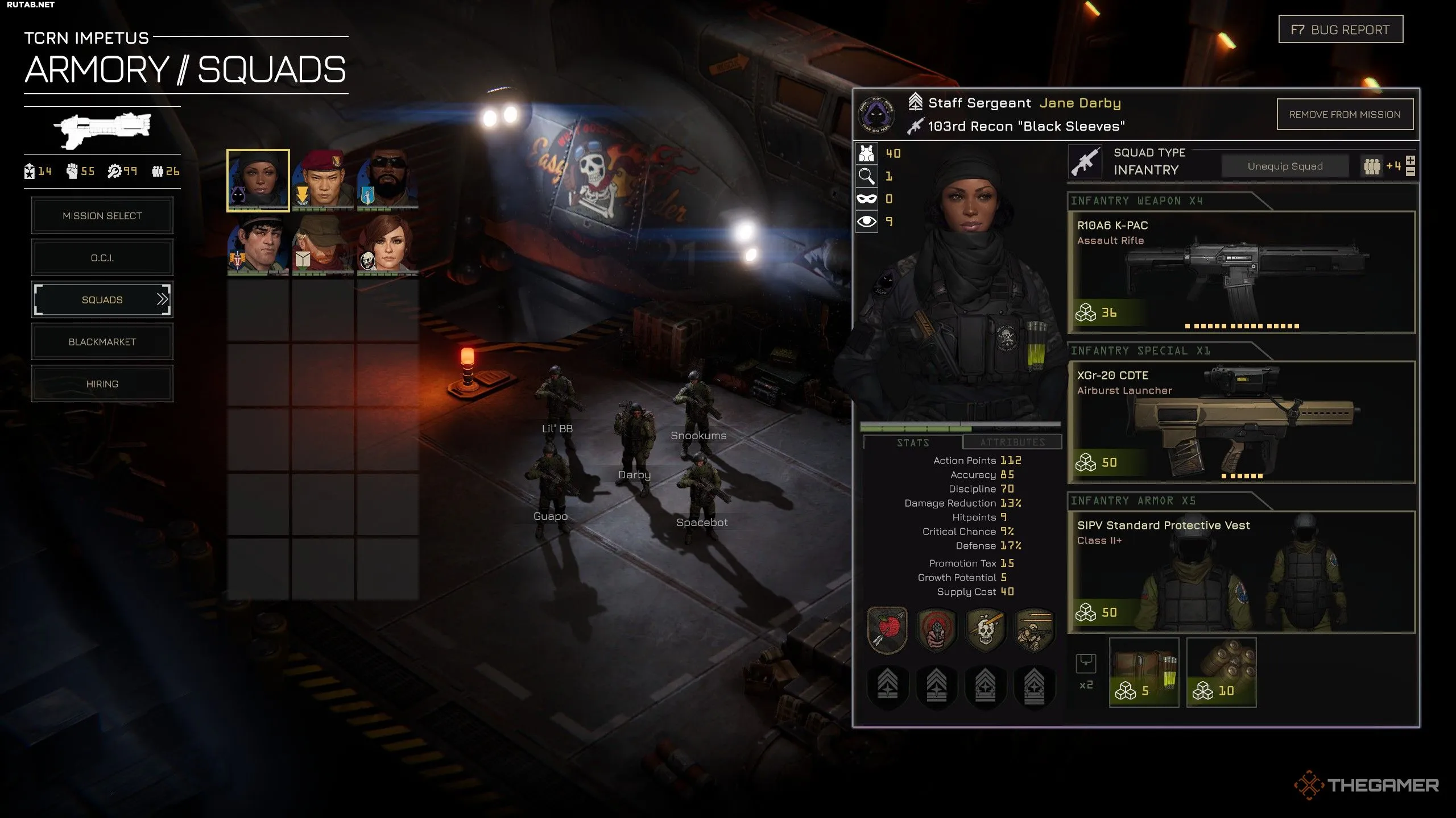 Однако бойцы — конечный ресурс. Они медленно восстанавливаются со временем, а на чёрном рынке можно нанять новых, но это может быть невероятно дорого. Старайтесь не подвергать отряды безрассудному риску во время миссий, потому что, хотя здоровье восстанавливается между заданиями, есть большой шанс, что вы не вернёте этих бойцов.