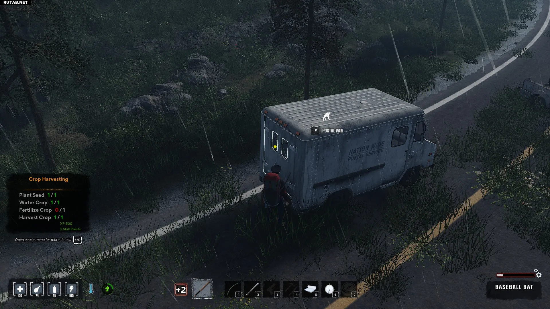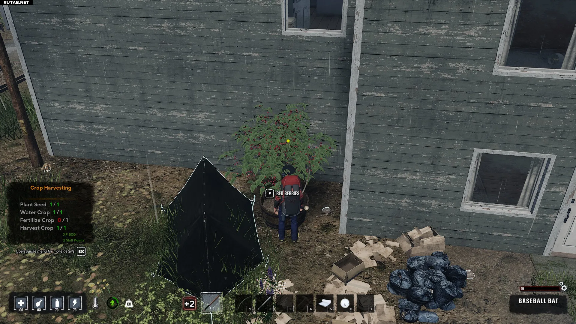 Сборщик дождевой воды: Рекомендуется создать его как можно скорее, даже на точке появления, если у вас еще нет базы. Позже сделайте несколько — они пригодятся для фермерства и готовки. Основной дефицитный ресурс для крафта — брезент. Ищите его в гаражах жилых домов, строительных магазинах и почтовых фургонах. Брезент также можно добыть из синих палаток.