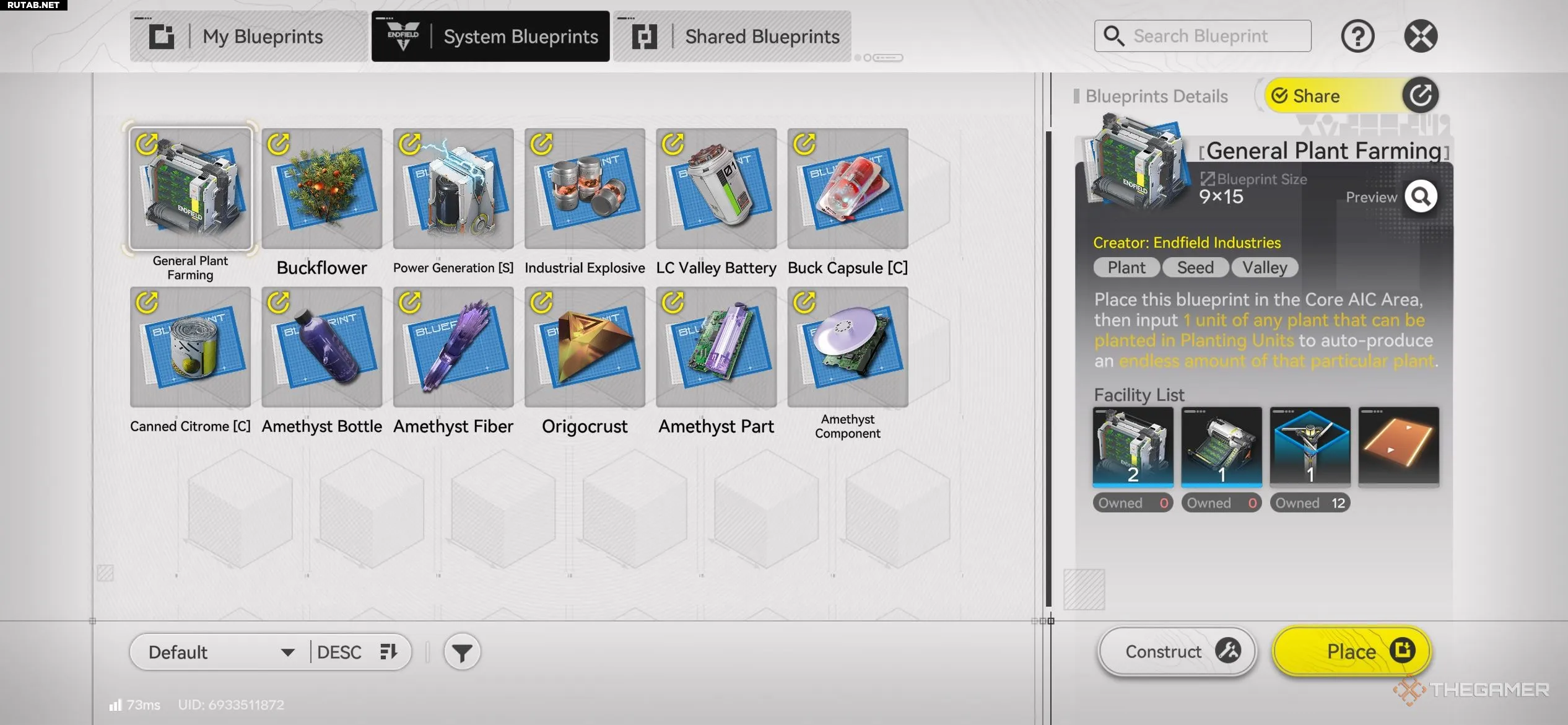 Системные чертежи позволяют выбрать определённый продукт для производства и предоставляют готовую схему для его создания, а также дополнительные инструкции по необходимым ресурсам для запуска процесса.