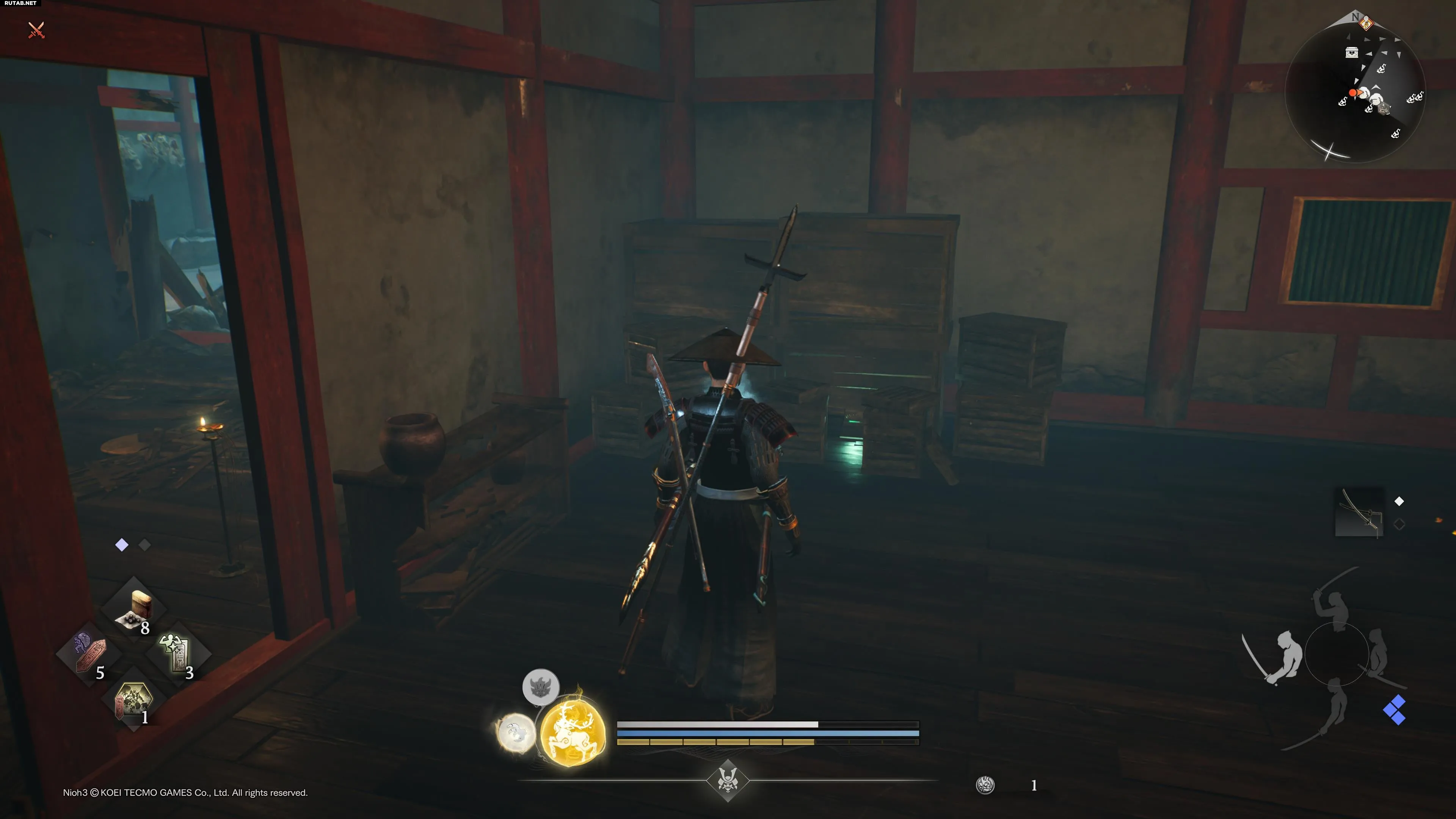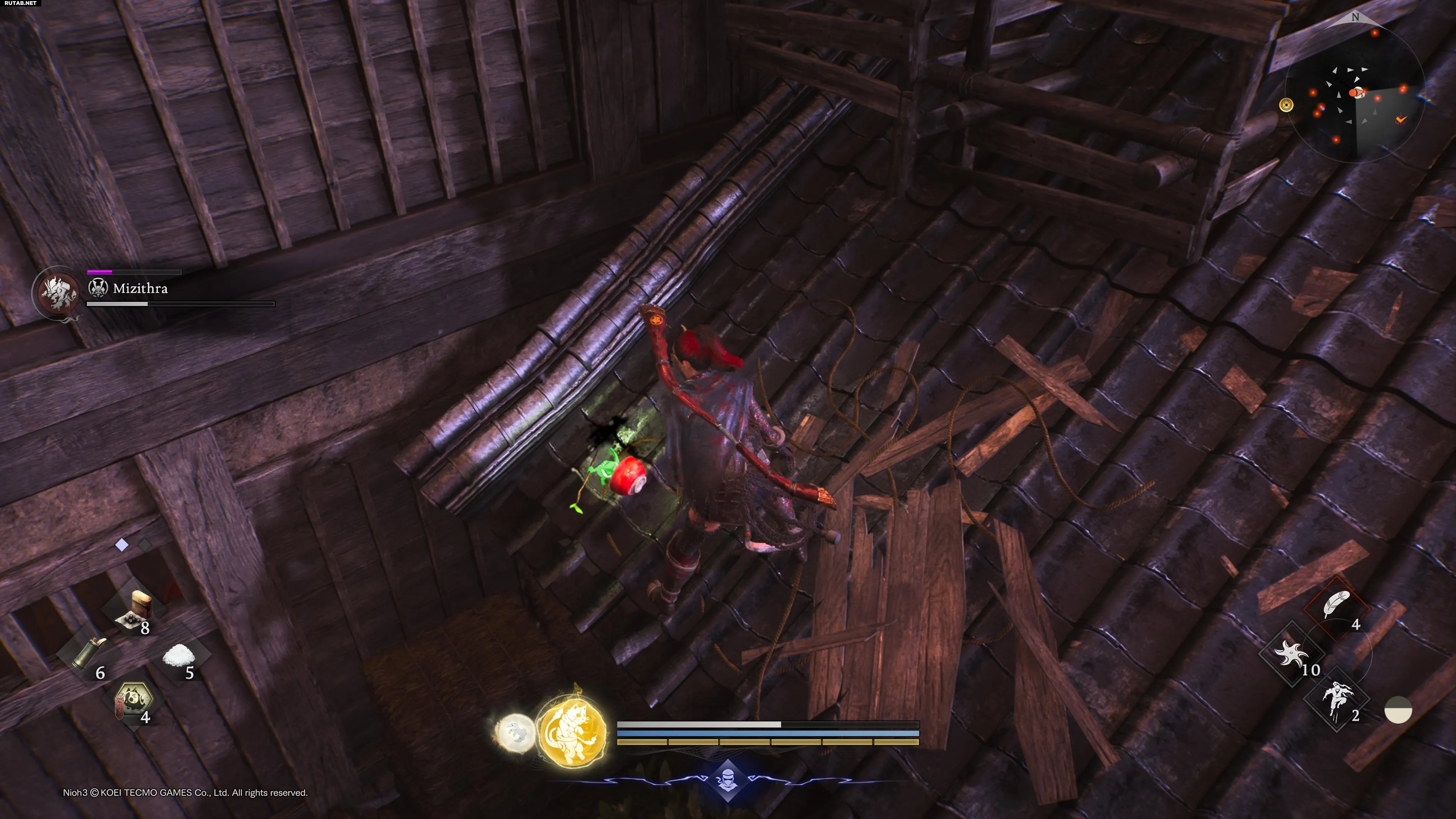 От святилища Пост Хамамацу продолжайте двигаться по дороге на запад. Когда окажетесь на открытой улице, окружённой зданиями с врагами, зайдите в дом справа. Уничтожьте поджидающего Гаки и поднимитесь по лестнице.