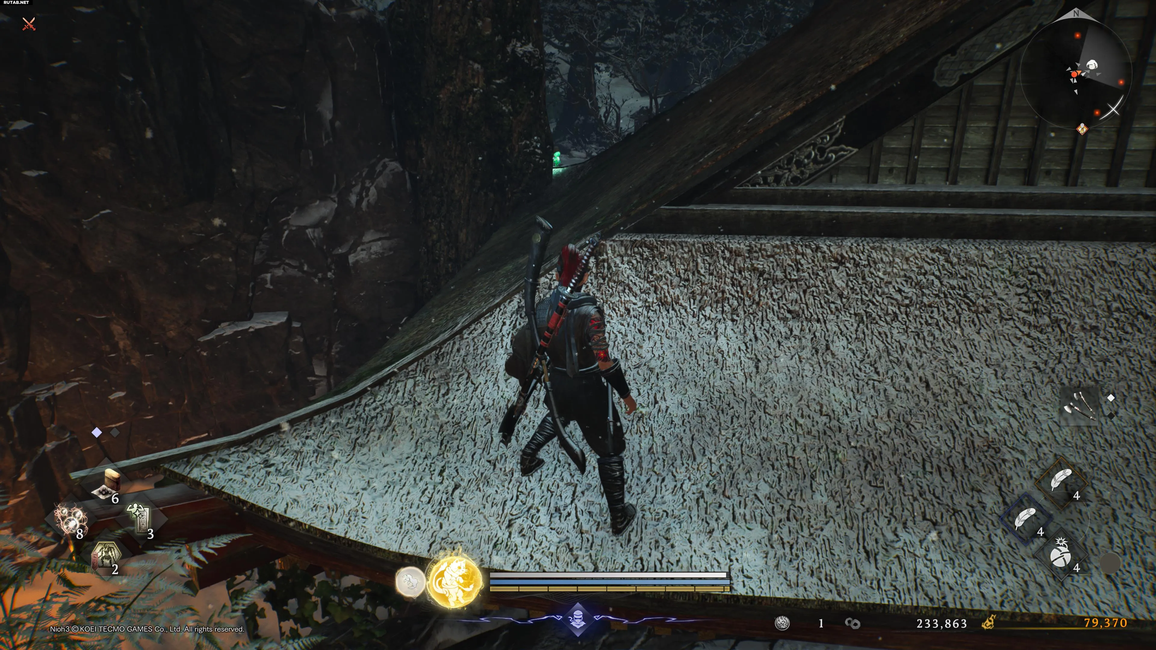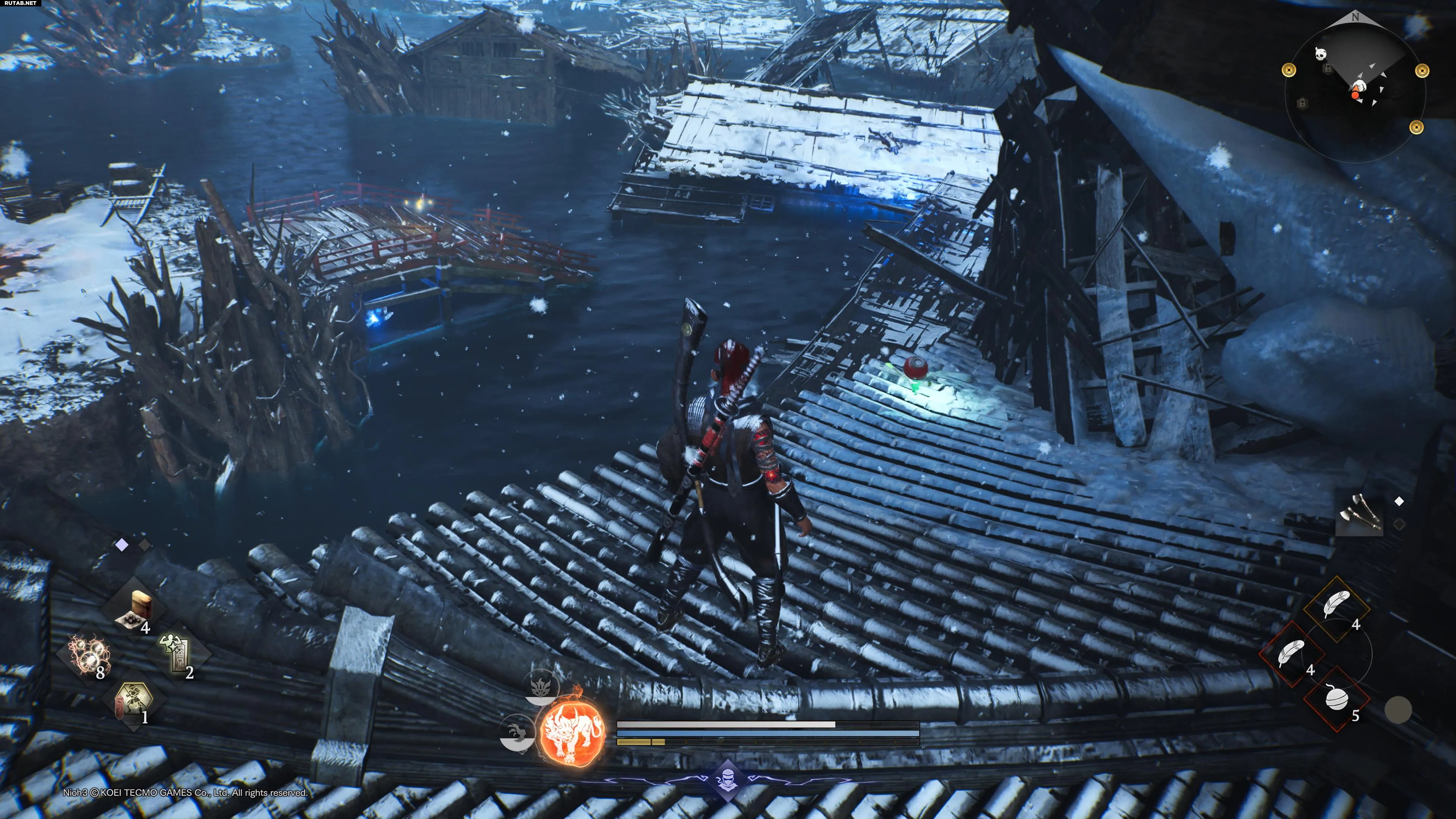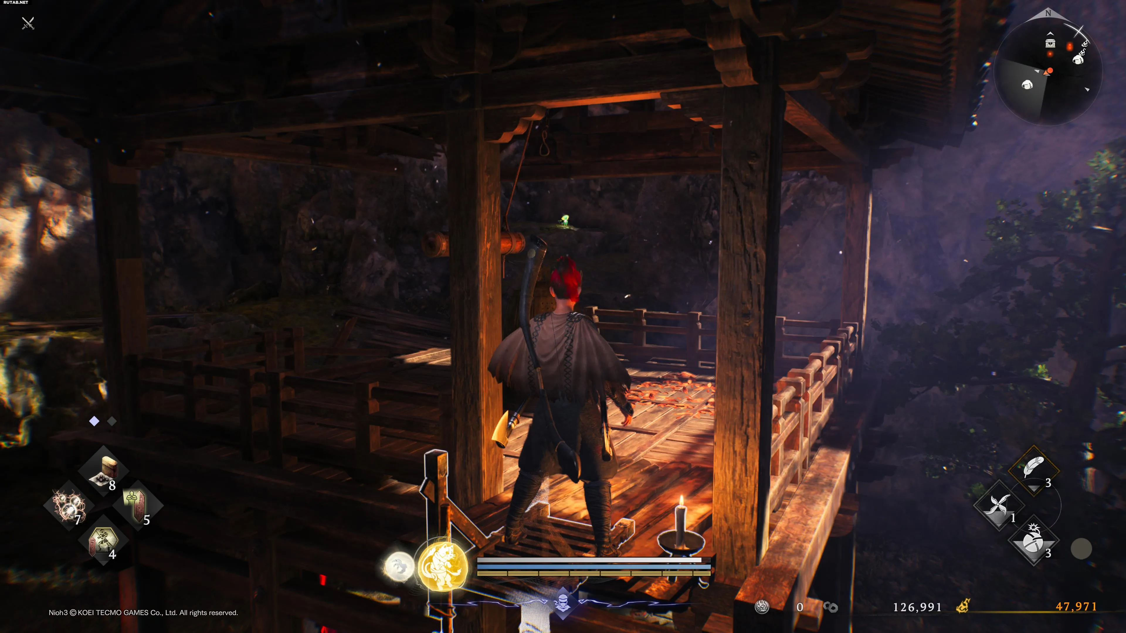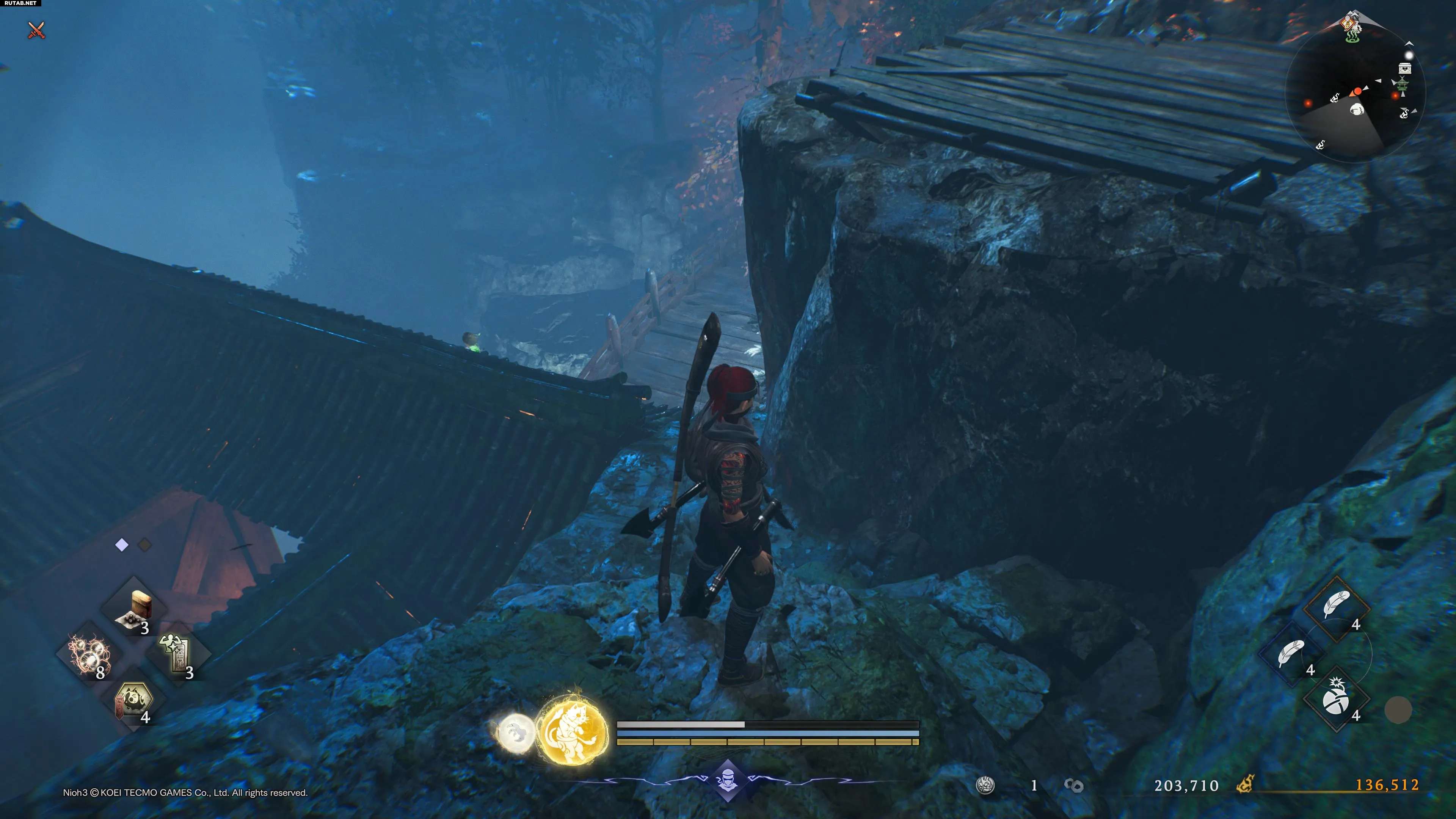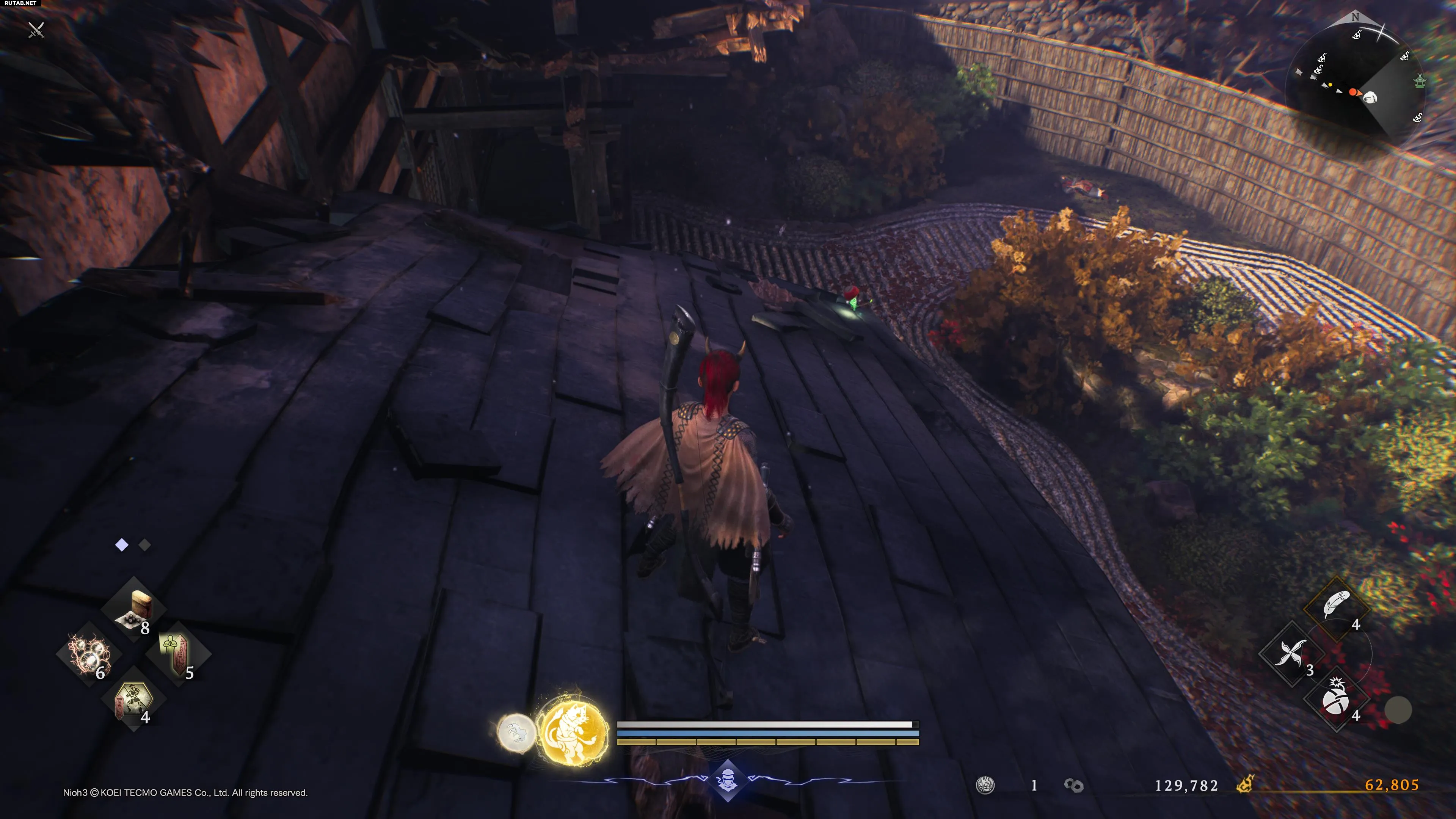 Продолжая путь от предыдущего места, перейдите мост и победите Одноглазого Они. Спрыгните вниз, разберитесь с ёкаем Каракаса, а затем запрыгните на крышу, чтобы забрать последнюю Кодаму на Горе Курама.