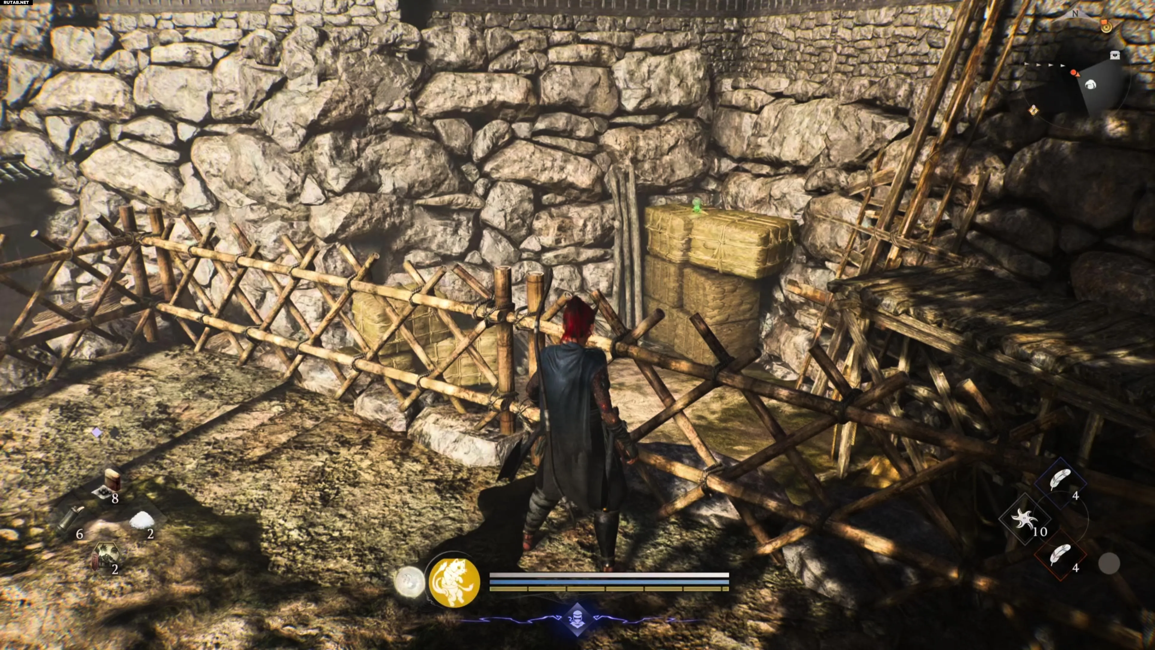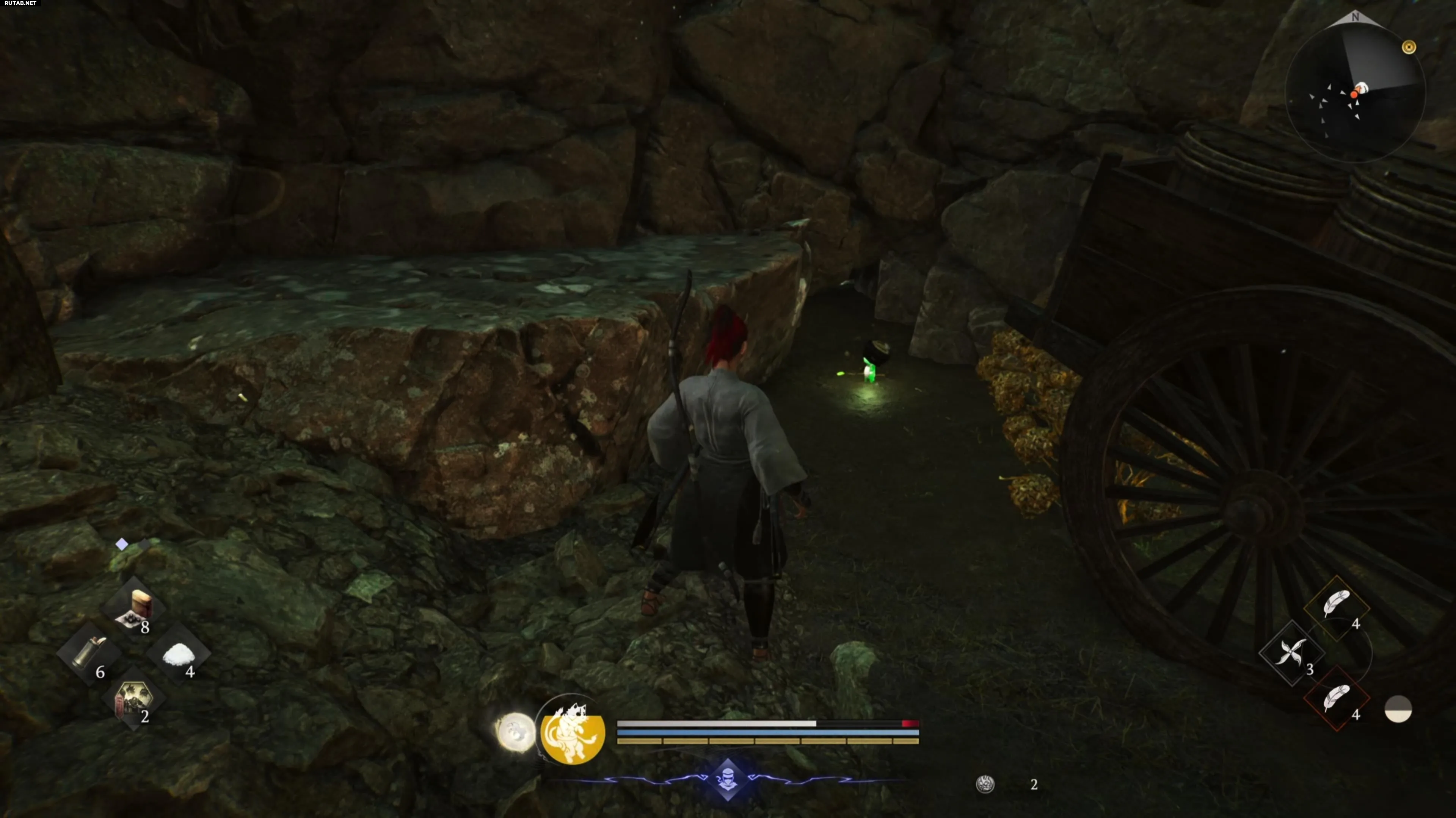 Двигаясь по восточной тропе от Святилища Развилка Микатагахара, вы, скорее всего, заметите зелёное свечение, исходящее от небольшого навеса, под которым сложено сено и другие припасы. Пробегите мимо него и продолжайте смотреть направо, пока не увидите ступеньки, по которым можно подняться.
