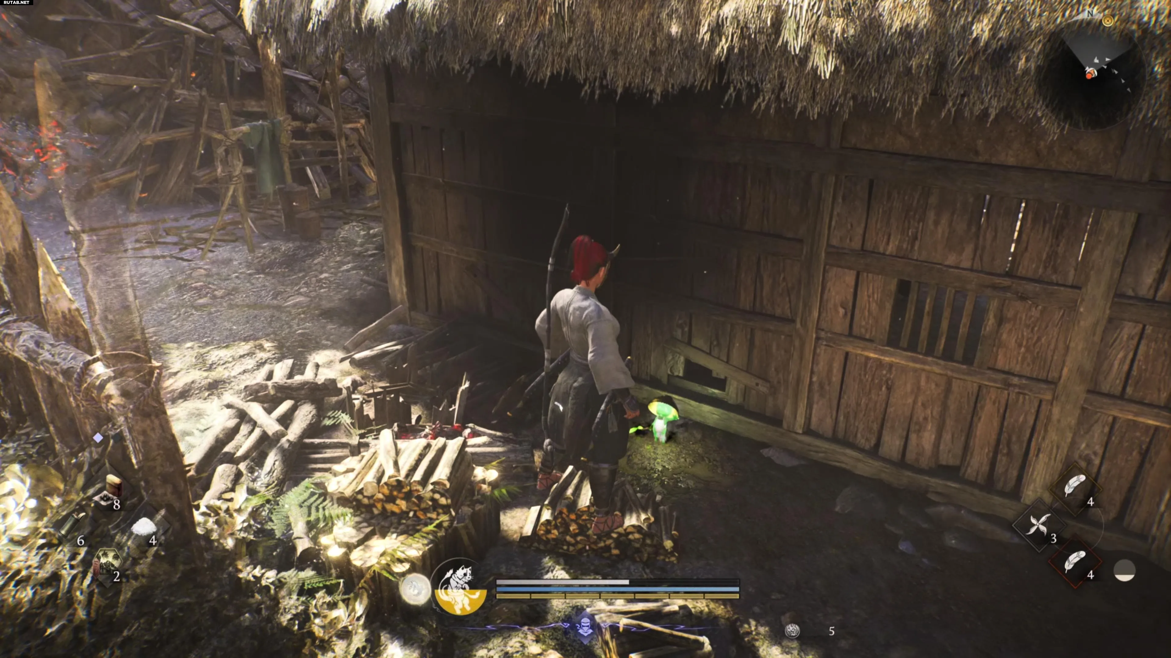 Сверните направо и разберитесь с двумя солдатами. Обойдите дом слева по кругу или используйте стог сена, чтобы забраться на крышу и перепрыгнуть через забор. Теперь вы сможете попасть внутрь дома, где и находится Кодама.