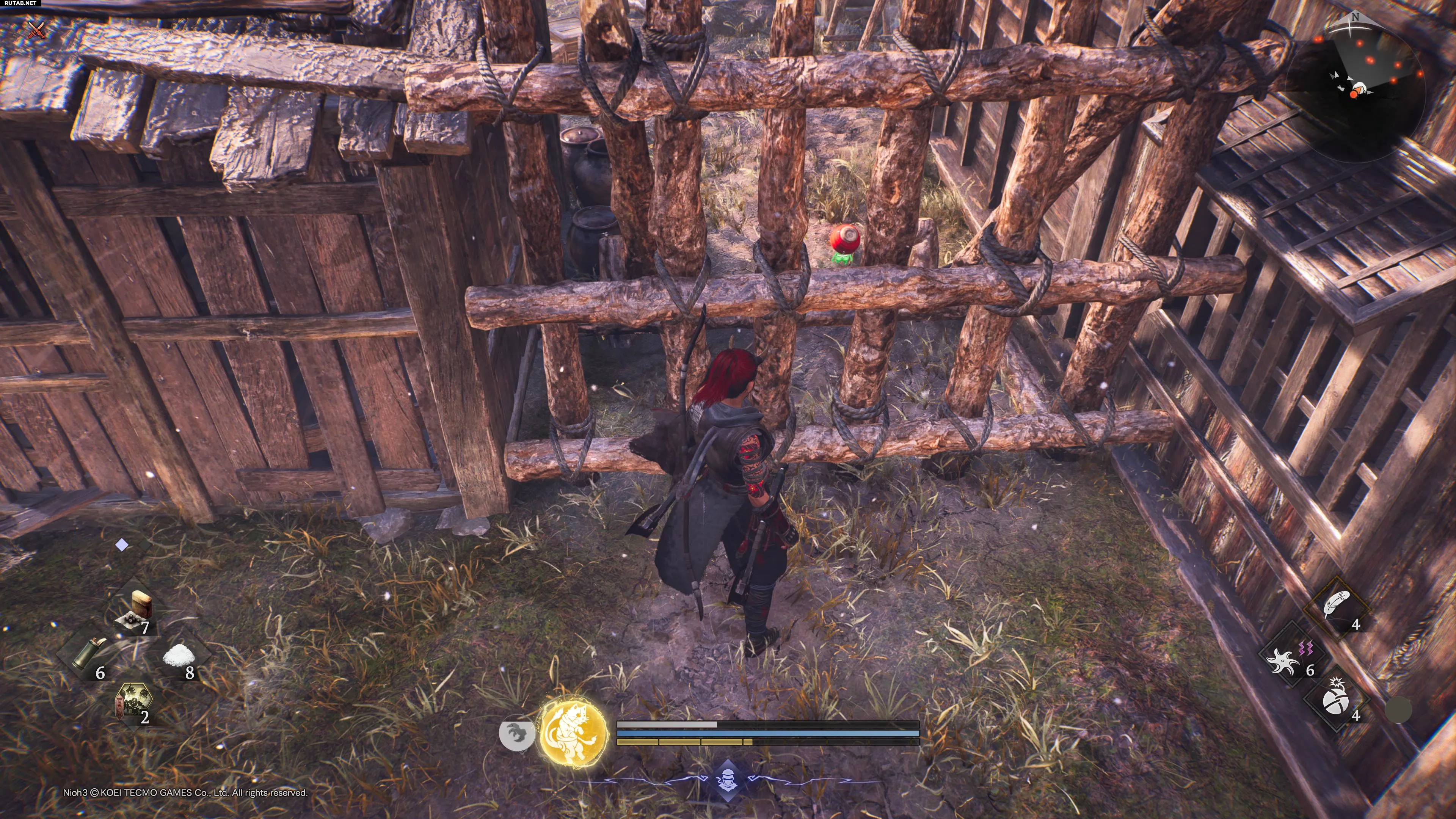 Следующие две Кодамы расположены близко друг к другу. После входа на территорию замка и прохода через трёхкомнатное здание рядом со сторожевой башней вы увидите Кодаму, до которой не добраться из-за колючей стены.