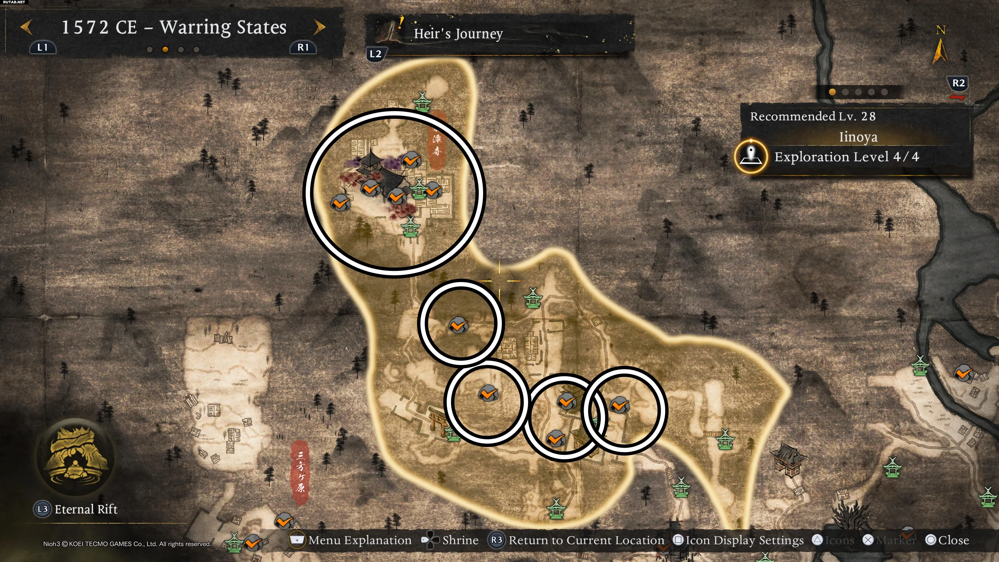 Все места Кодама на локации Фунаокаяма в Nioh 3.