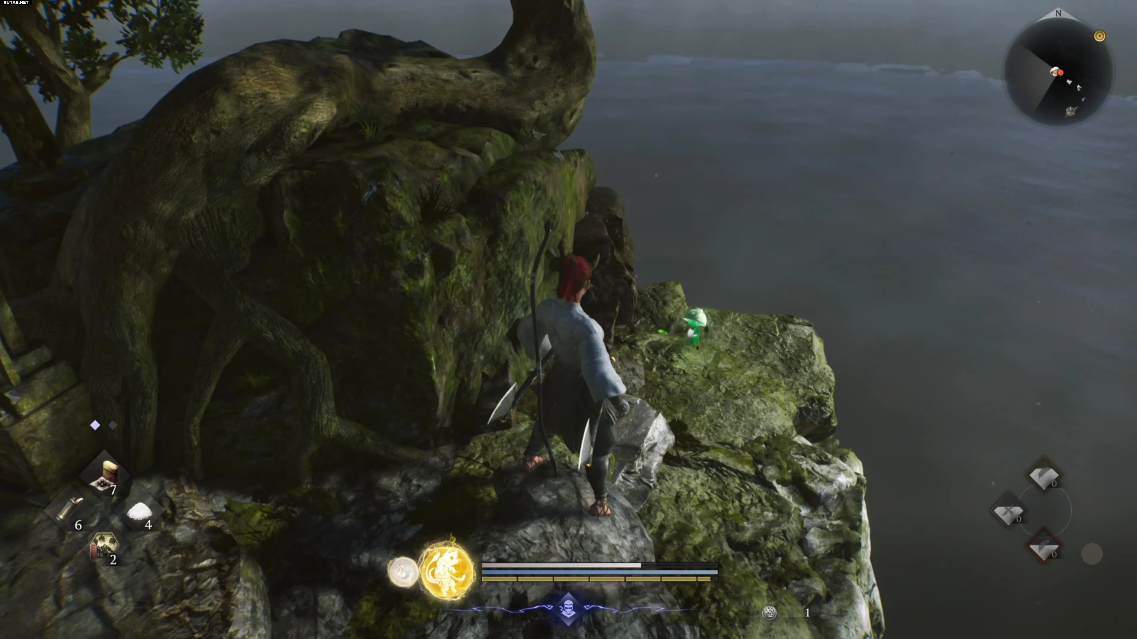 После того как пройдёте под второй аркой из корней дерева, взберитесь по скалам слева, чтобы оказаться на самой арке. Кодама находится с другой стороны.