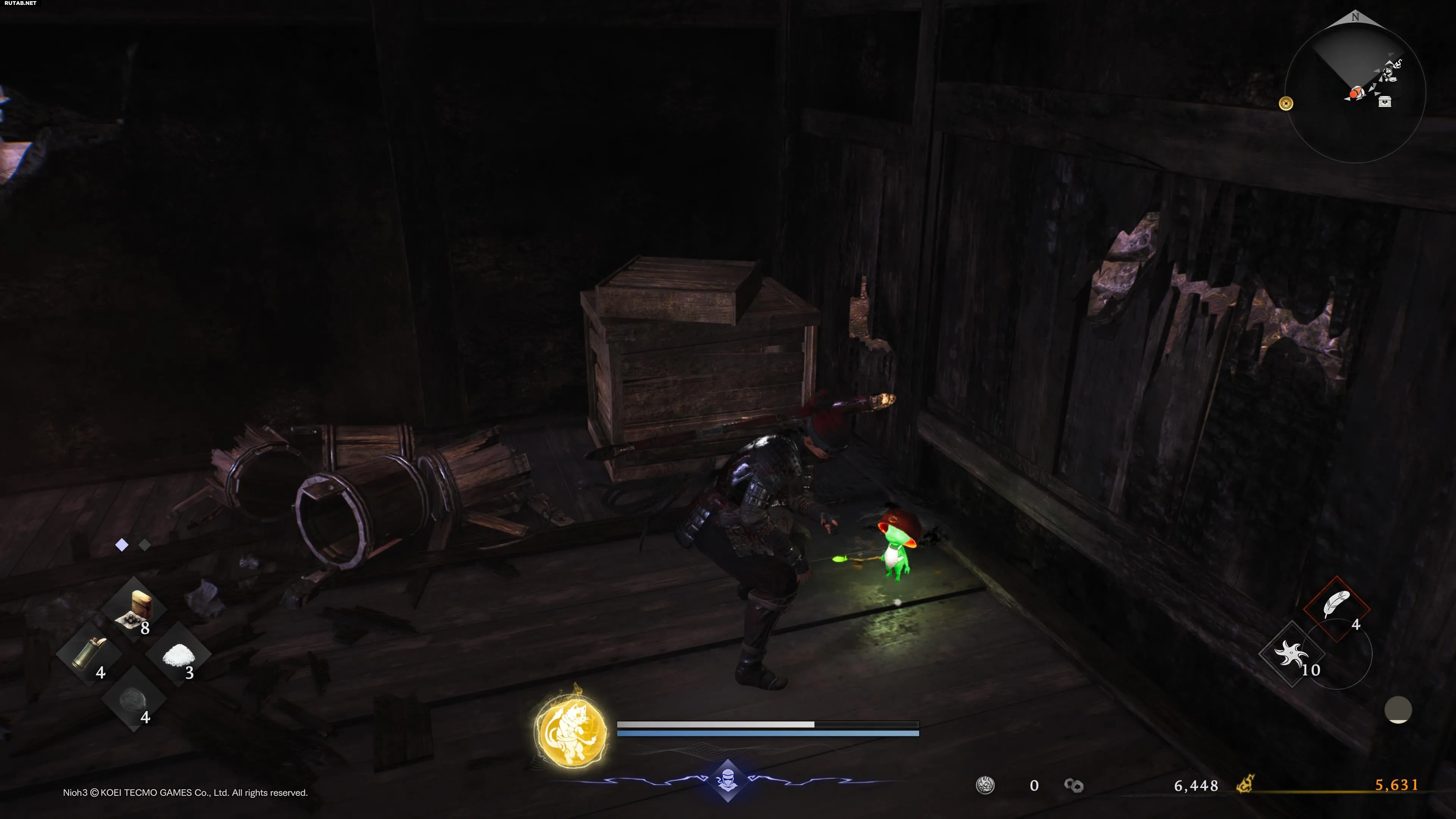 Следующая Кодама находится рядом со второй группой стрелков, которые обстреливают вас со стен замка. Разберитесь с ними, а затем подойдите к единственной задымлённой закрытой двери лавки позади них.