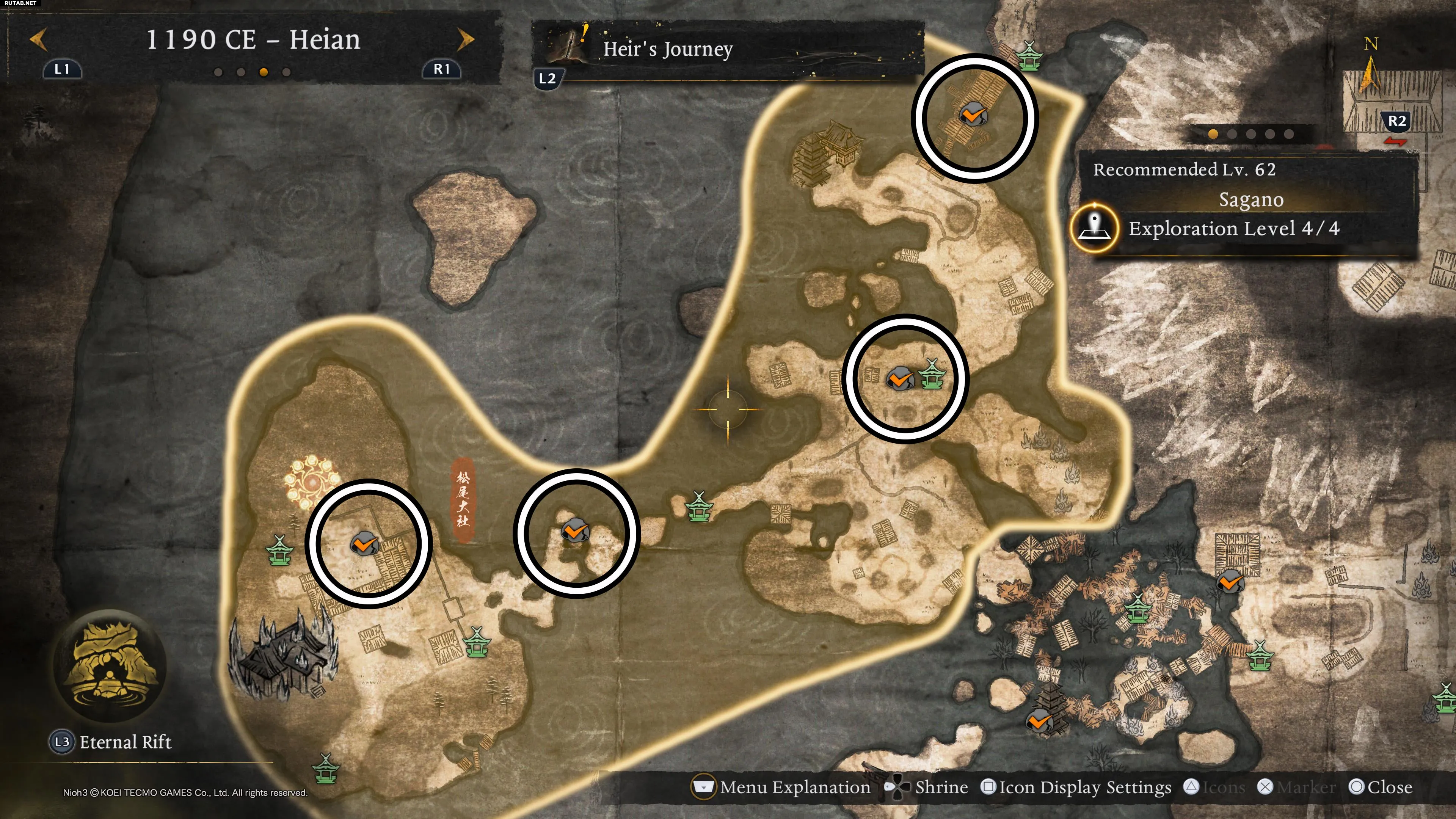 Хотя в эпоху Хэйан Кодам гораздо меньше, хочу подчеркнуть, что три из них, которые находятся на Горе Курама, легче всего забыть, если вы их пропустите. Гора Курама считается отдельной областью без уровня исследования. Это значит, что вы не сможете полагаться на удобный чек-лист. Если ваш список выглядит «полным», но вам всё ещё не хватает одной или двух Кодам, скорее всего, они именно здесь.