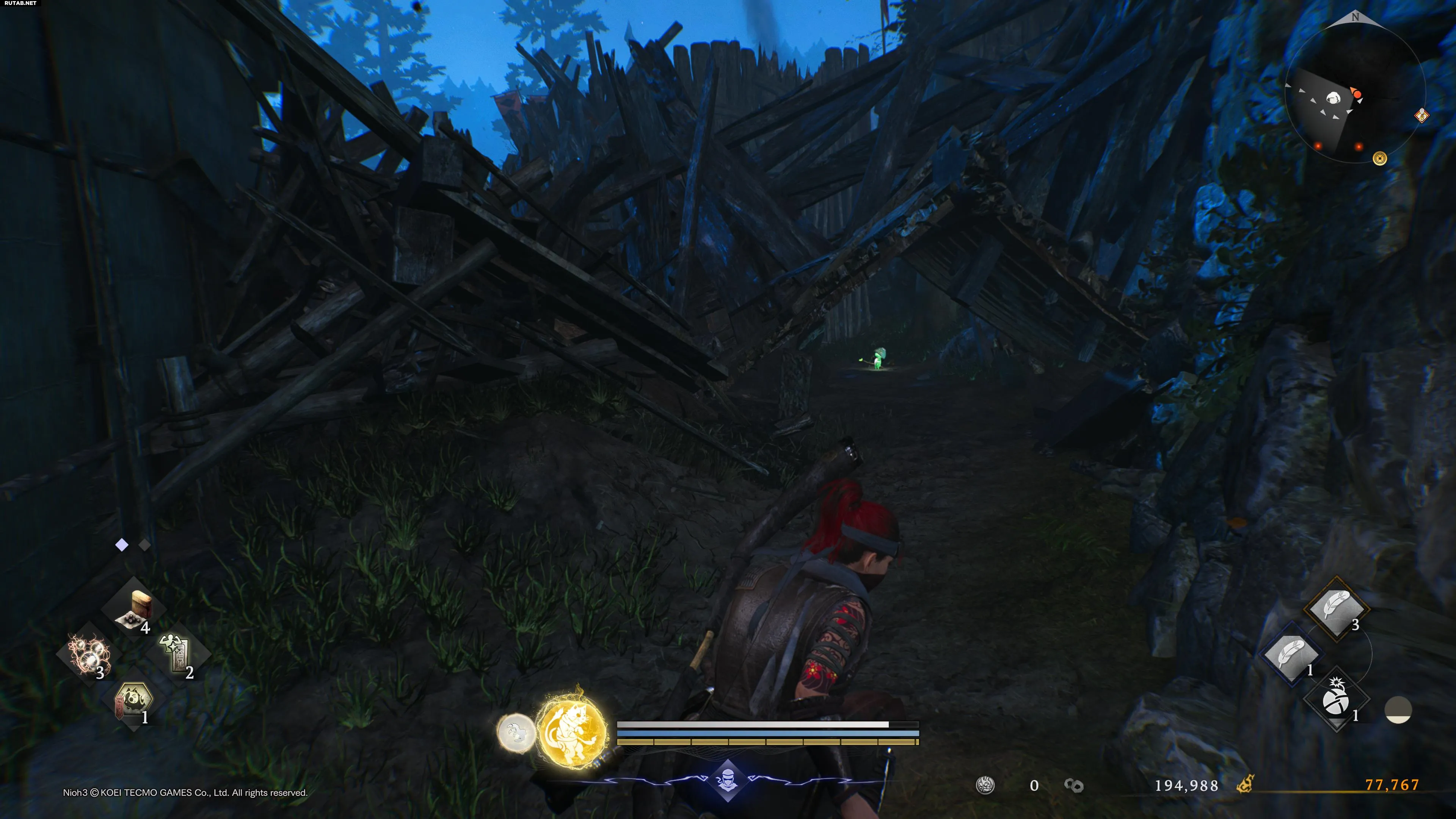 Далее отправляйтесь на север к святилищу Лес Светлячков. Идите по извилистой тропе справа, попутно разбираясь с Нодзути, Нурэ-онной и Ямабико.